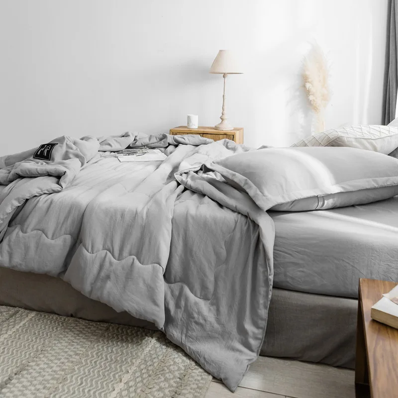 Летнее одеяло в японском стиле, однотонное серое одеяло, покрывало ...
