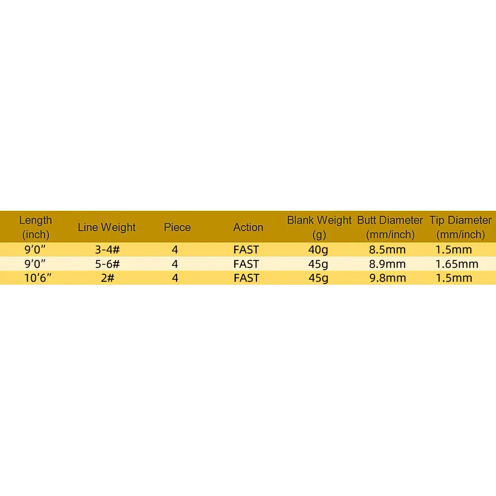 1. Пустой: IM12 9 футов3/4wt4 шт,IM12 9 футов5/6wt4 шт.,IM12 10 футов 6 дюймов2wt4 шт.