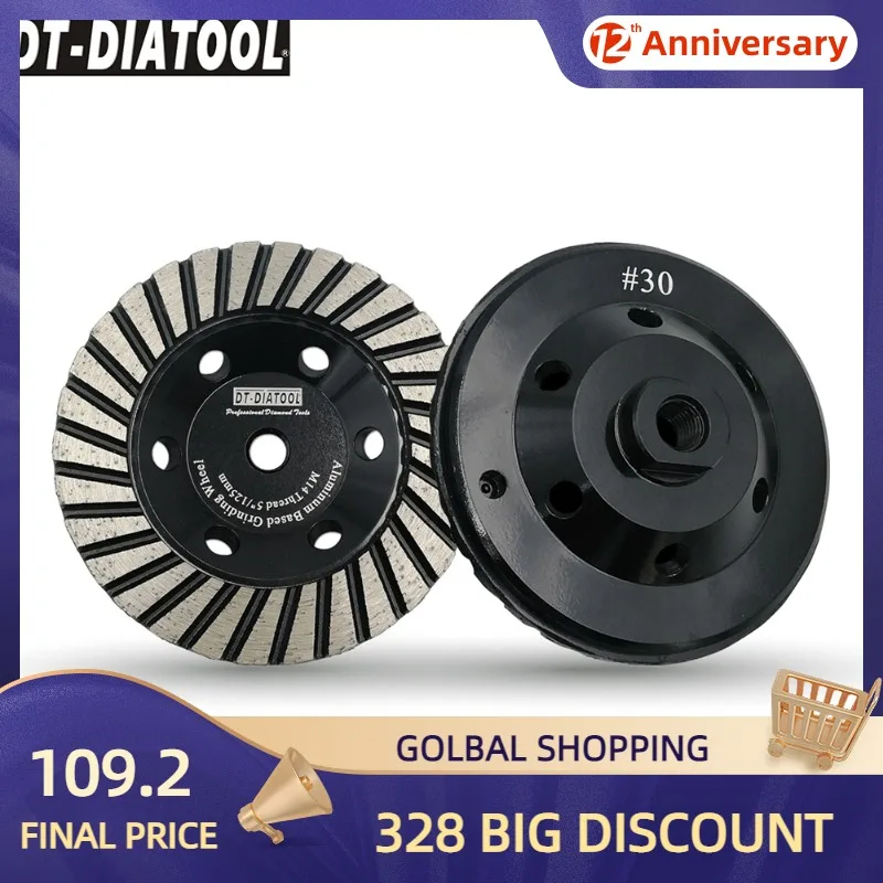 DT-DIATOOL 2 шт. Диаметр 5 "125 мм M14 или 58-11 шлифовальный круг на алюминиевой основе алмазный шлифовальный диск гранитный мрамор шлифовальный круг