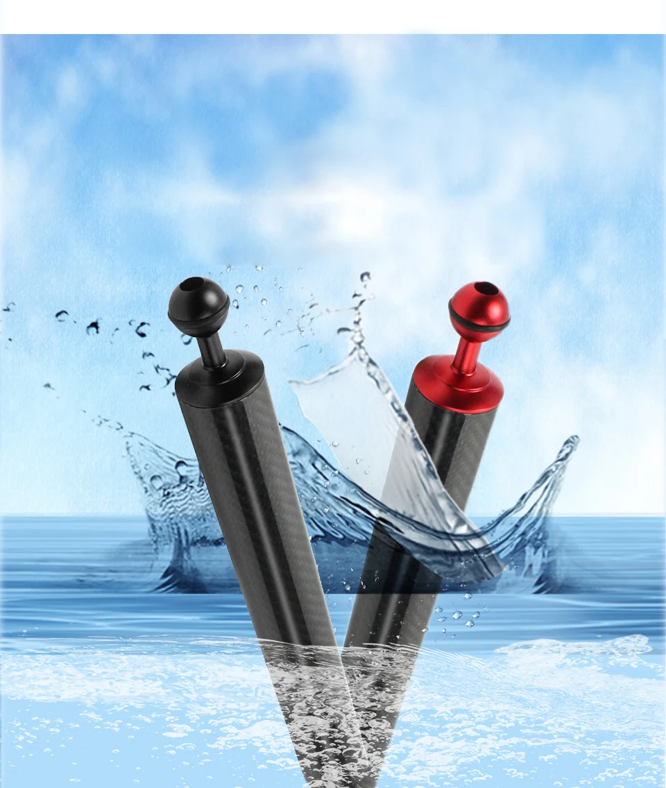 Поплавковый удлинитель из углеродного волокна, 1 дюйм, двойной шарик, для камеры для дайвинга, светильник для фотосъемки 1214 дюймов, плавучий штатив