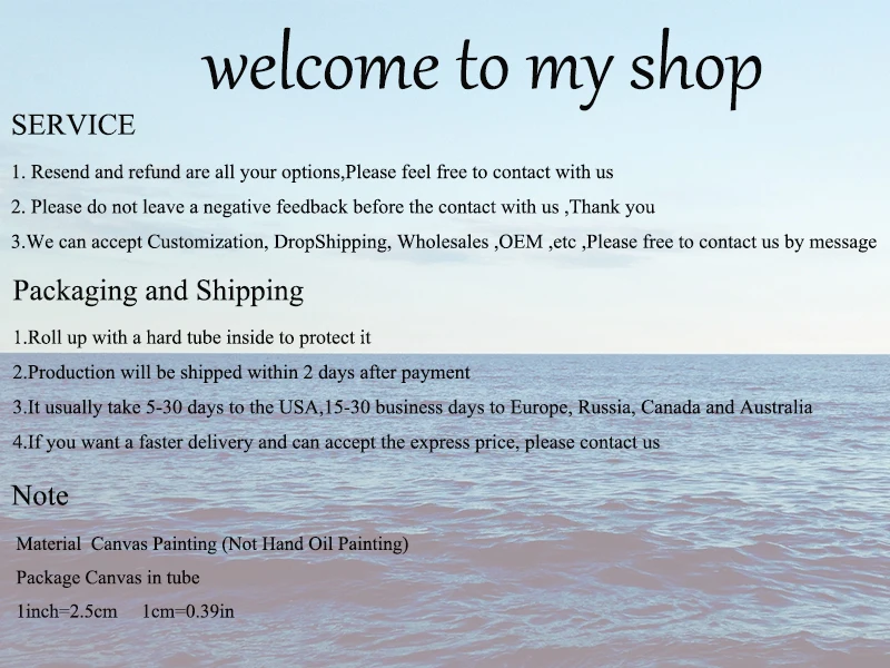 Материал: хлопковый холст Упаковка: европейский стандарт Технология: принт (рамки и украшения в комплект не входят) Примечание: 1. Возможна небольшая разница в цвете из-за монитора компьютера или настроек мобильного телефона. 2. Размер измеряется вручную. Погрешность 0,5 см. 3. Один дюйм = 2,54 см