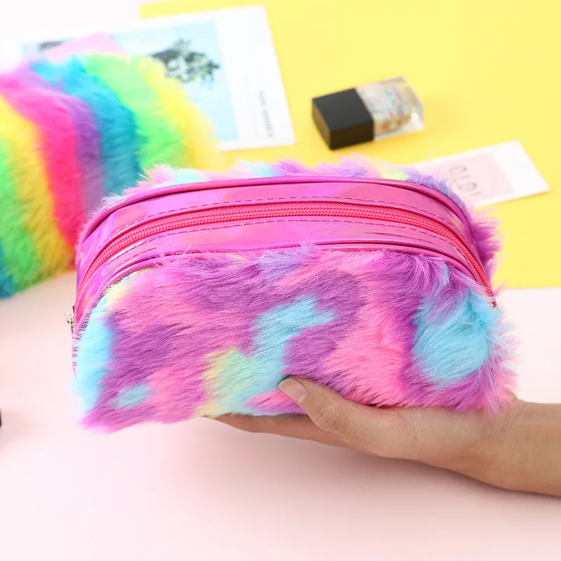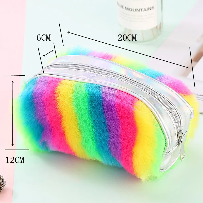 Пенал для карандашей, плюшевый, разноцветный, Радужный, для девочек