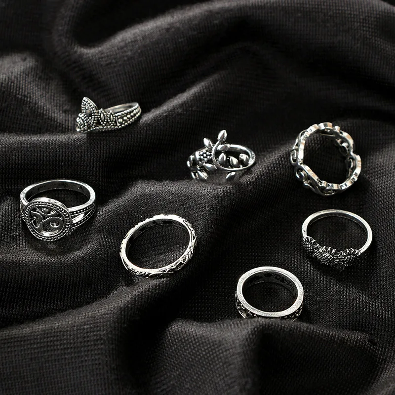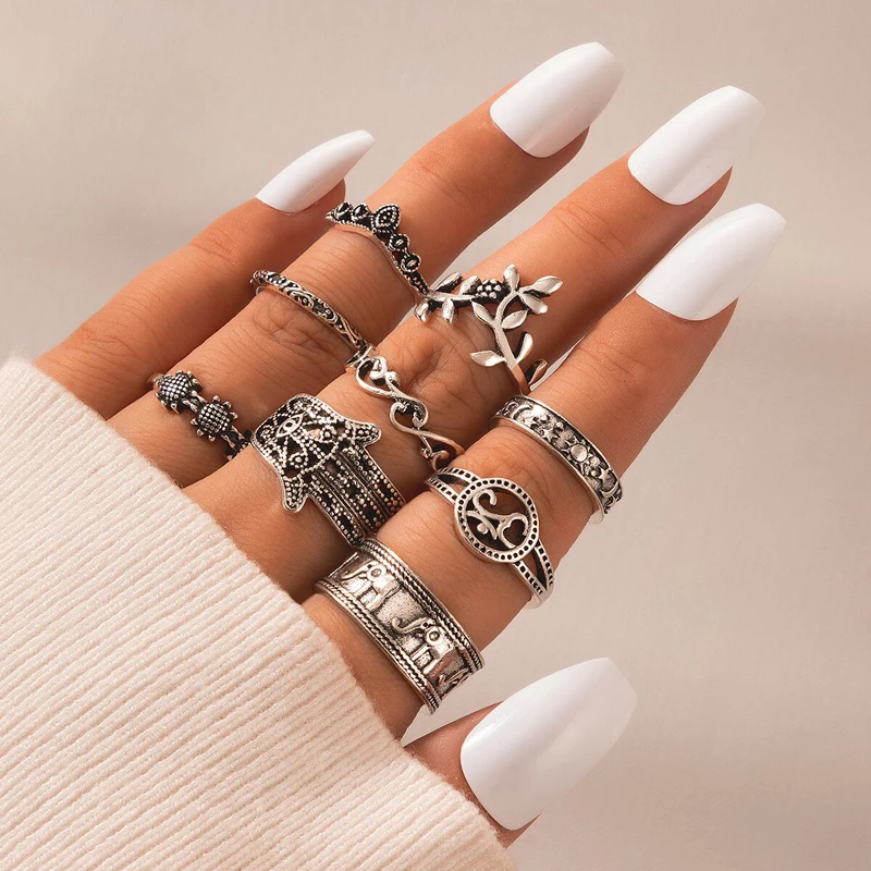 Комплект колец Tocona 9 шт.компл. в стиле бохо для женщин, винтажные кольца на пальцы рук в стиле бохо, декор слон, цветок, листья, Ювелирное кольцо, 4618