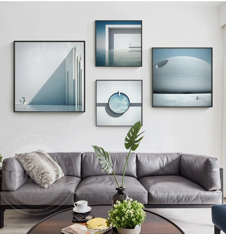 Современные ярко-голубые картины на холсте, плакаты и печать, Скандинавская конструкция, настенные картины для гостиной, спальни, домашний декор