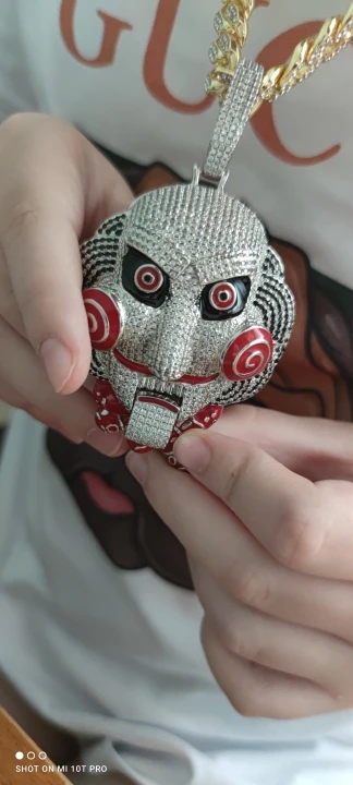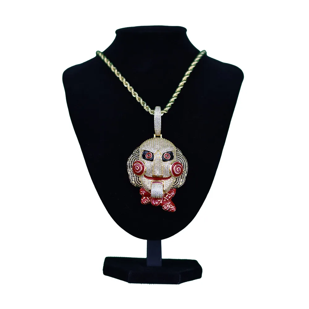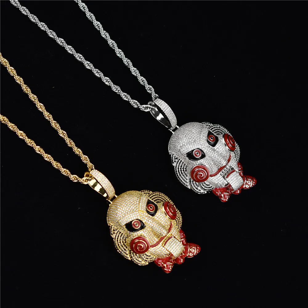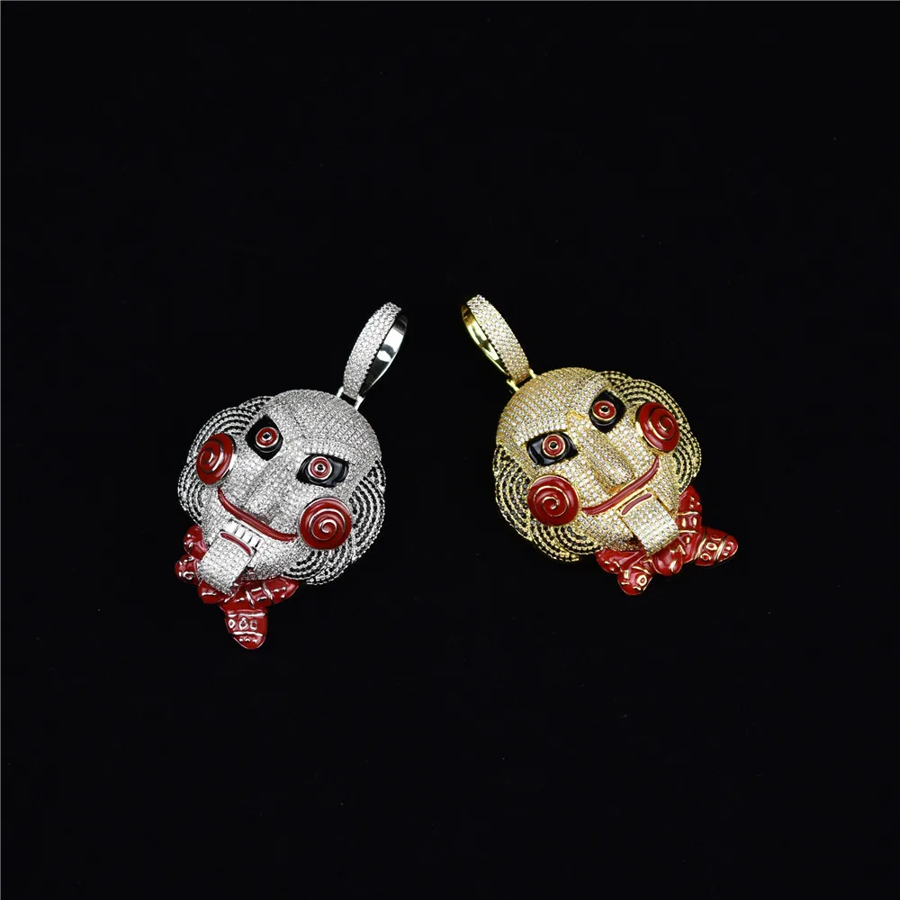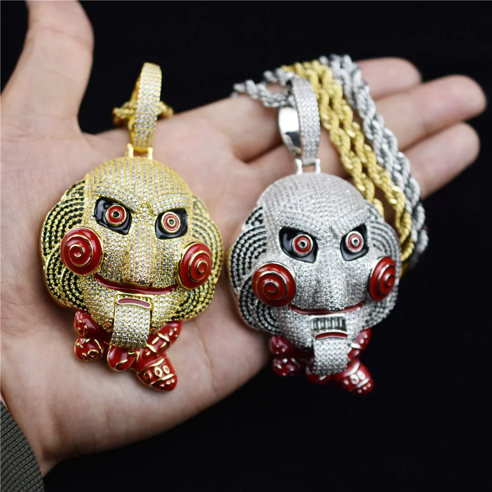 Массивная цепочка в стиле хип-хоп, массивная, покрытая камнями, колье с клоуном, s и подвески, цепочка в виде пилы, Билли, ожерелье, ювелирные изделия