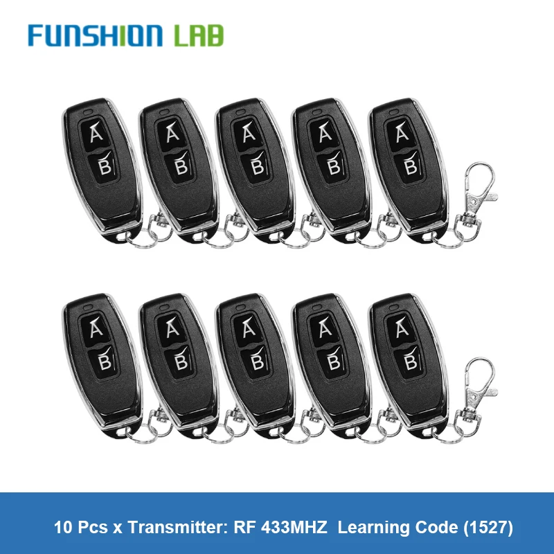 Пульт дистанционного управления FUNSHION 433 МГц RF, код обучения 1527 EV1527 для ворот гаража, дверь, контроллер, сигнализация, 433 МГц, аккумулятор в комплекте