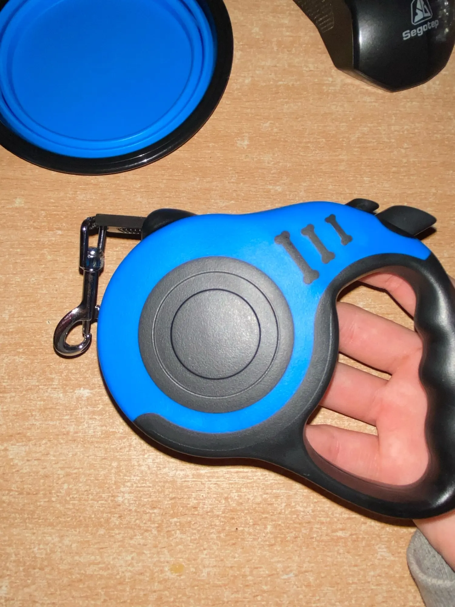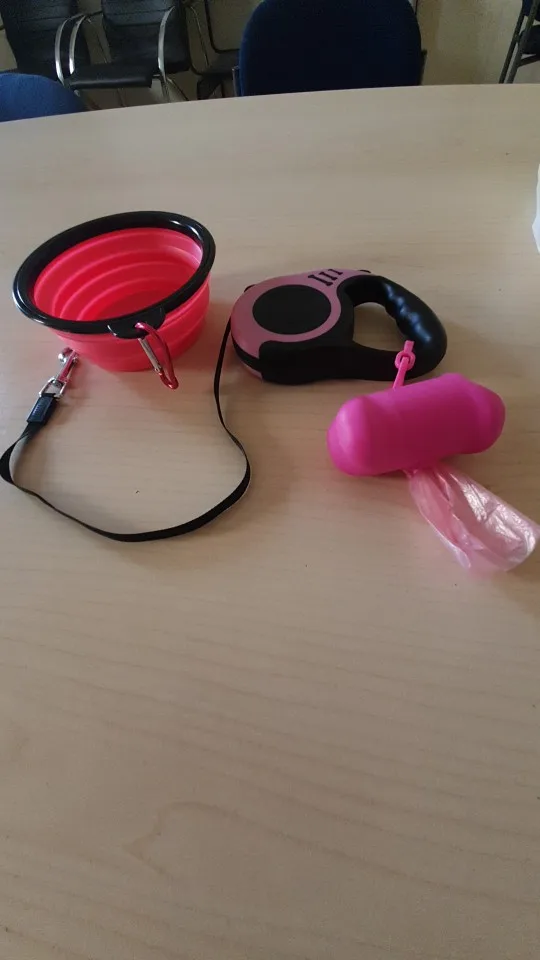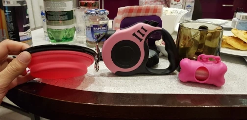 Получила на почте уже недели 3 назад. Все очень понравилось, особенно поводок - из-за него в общем-то и заказывала. Хороший поводок - лента без труда заходит обратно. Пришлось приноровиться к нему, т.к. до этого был другой, с другим расположением кнопок -фиксаторов. Не могу сказать, какой удобнее, но, надеюсь, что этот крепче. Тот разлетелся. Единственное, что немного не удобно в этом поводке - это рука в варежке не пролазит, но удобно без перчаток ( у меня рука маленького размера S). Для морозных периодов придется заказывать побольше, потому что на севере без варежек никак. Чашу пока не использовали, контейнер тоже ждет своего летнего "часа", чтобы хоть к рюкзаку его пристегнуть или к сумке, а то у нас Чихуахуа - на него повесишь - все встречные рыдать со смеху будут, и так хохочут при виде такой охраны, даже Лайки и Хаски расступаются, когда мы идем.