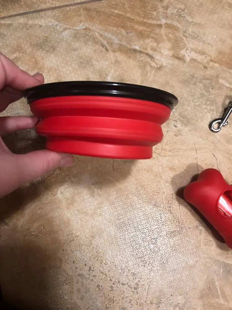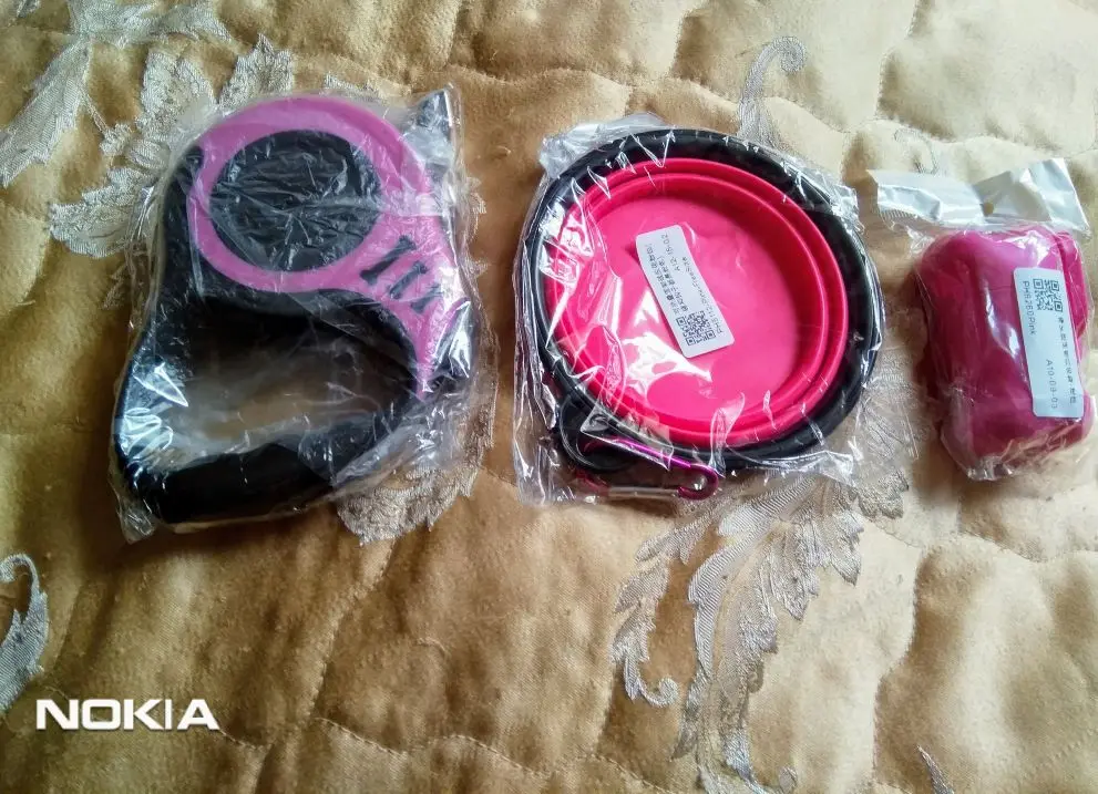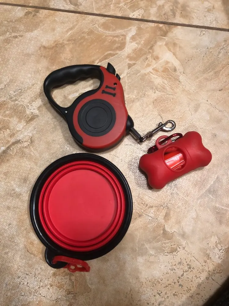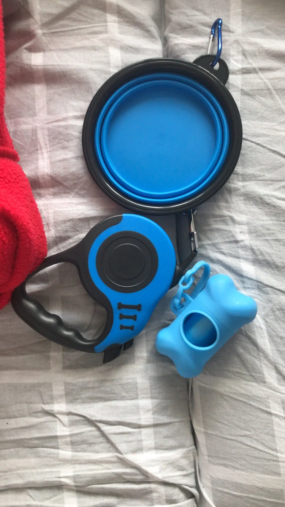 Все отлично! Поилка, дозатор и идеальный ремешок, как на фотографиях. Очень приятный цвет, все очень хорошо упакованы и быстрая доставка. Ремешок маленького размера, если у вас большая собака или большие руки, лучше взять другой размер. Я рекомендую его! Спасибо продавцу