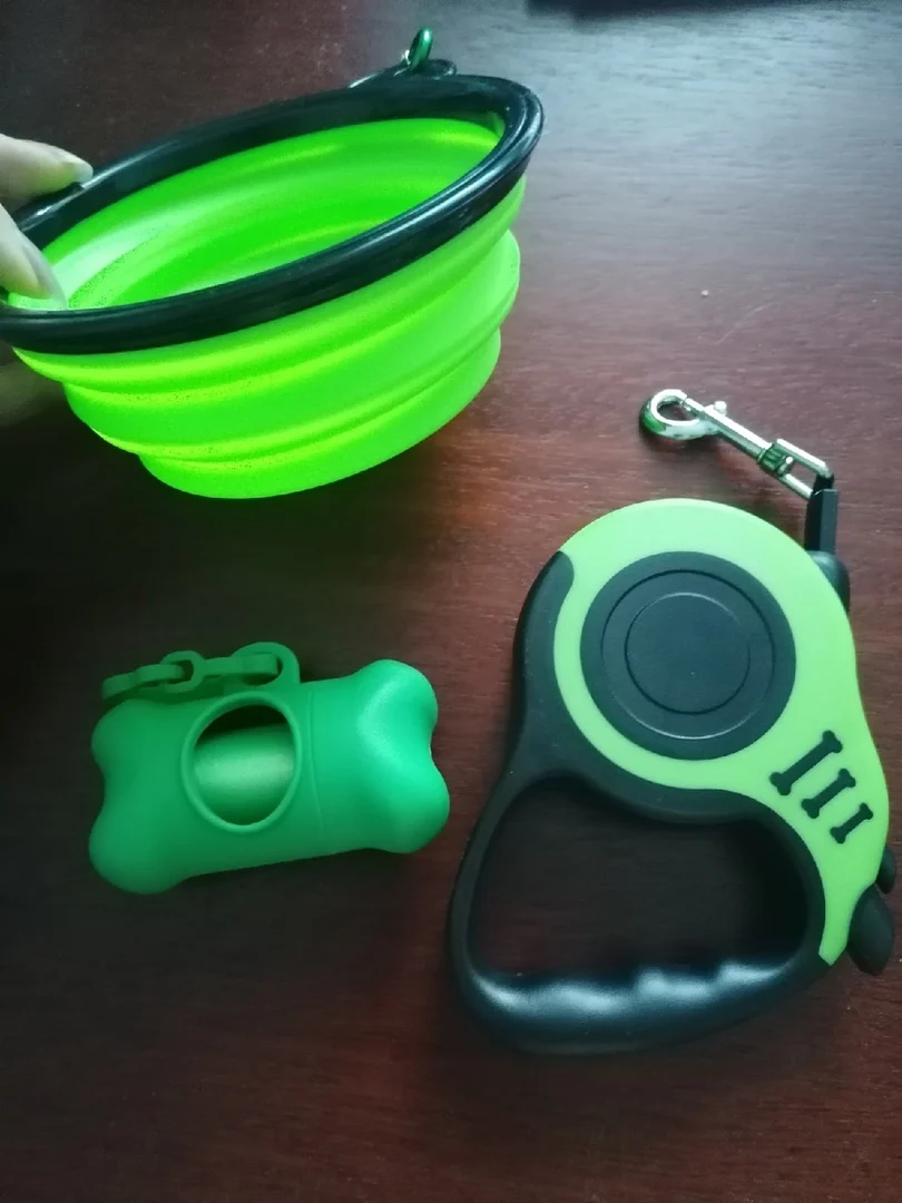 Набор очень удобен и неплох. Однако поводок годится лишь для небольших или очень послушных собак. У меня собака среднего размера, 14 кг, молодая и непослушная, гиперактивная, поводок брала на пробу, на второй день использования он пришел в негодность, не фиксируется.