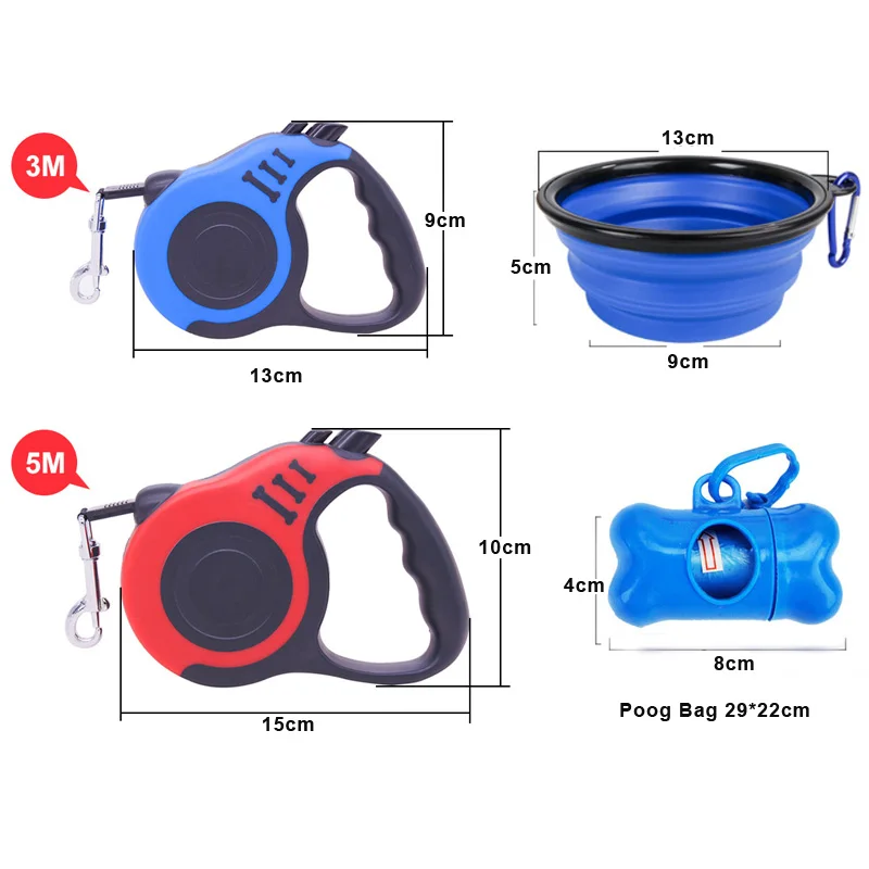 Выдвижной Поводок для собак, раздатчик мешков для отходов и сумок + миска для собак, сверхпрочный поводок для прогулок, высота 3 м5 м