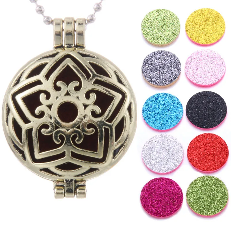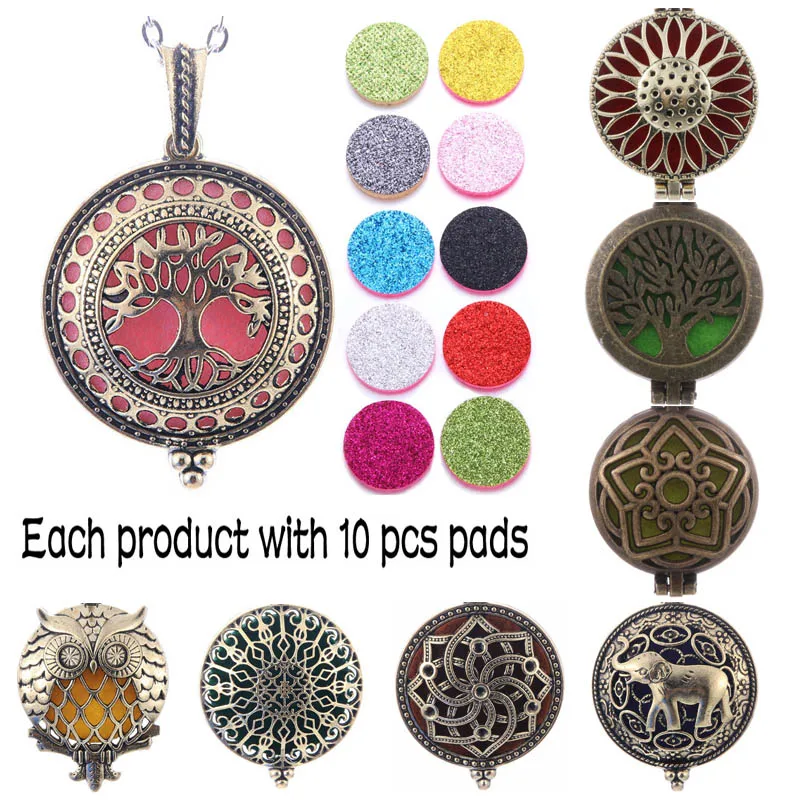 Новое бронзовое ожерелье с аромадиффузором, античный открытый медальон, подвеска, духи, эфирное масло медальон с ароматом, ожерелье (подушечка 10 шт.)