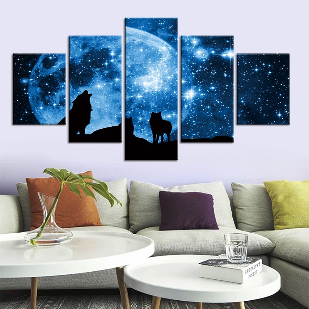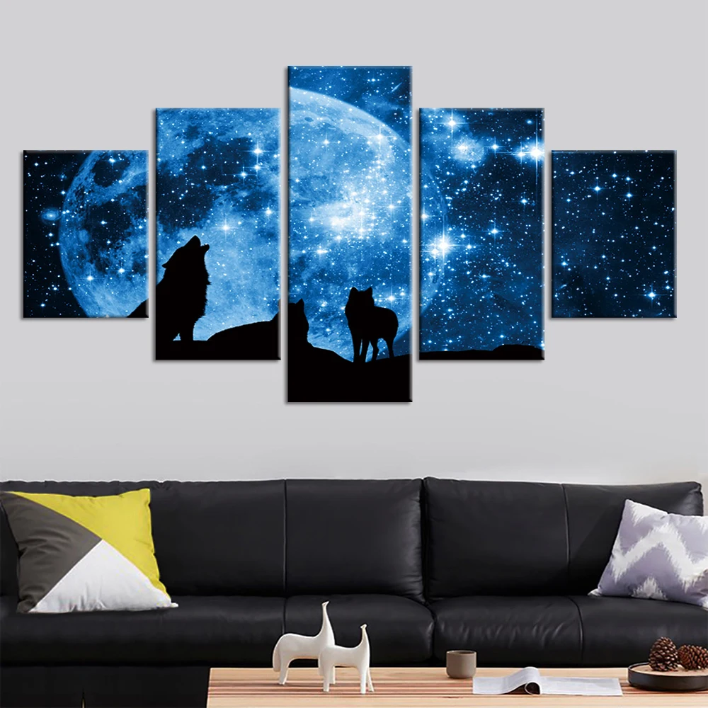 Картина на холсте с изображением волка, современные принты с жикле, 5 шт., художественное оформление для домашнего декора, в рамке, готовая к висению