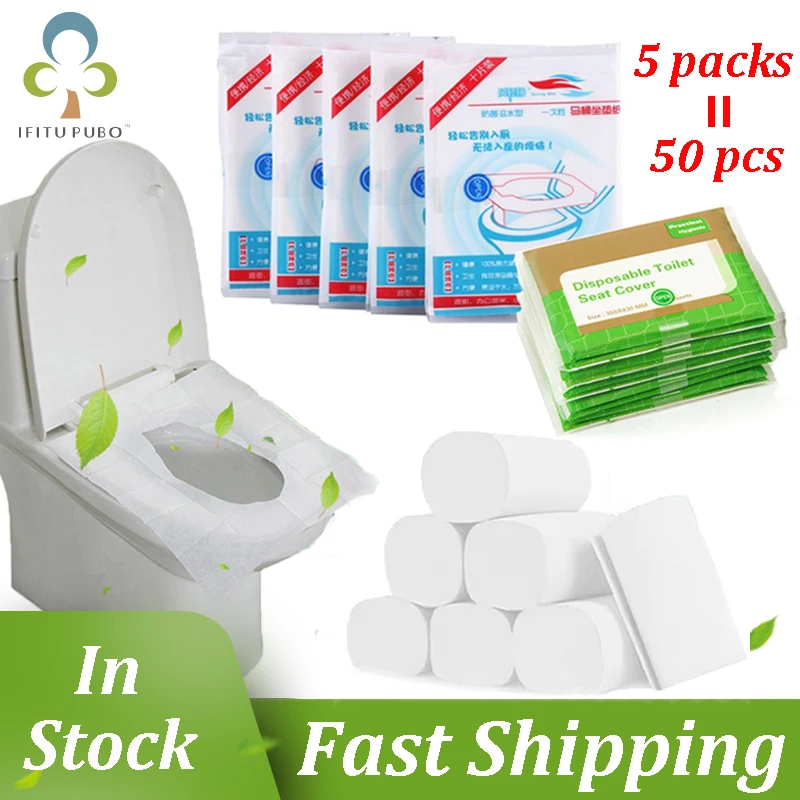 50 шт. ПЭ каверы для ободка унитаза крышка коврик 100% Водонепроницаемый Бумага пластиковое туалетное сиденье для располагаться лагерем перемещения Ванная комната Accessiories GYH