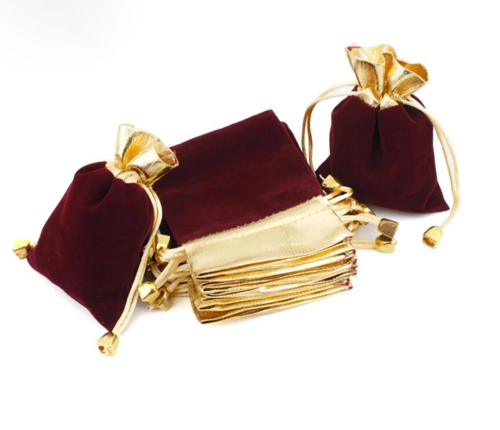 Элегантные Бархатные Мешочки, ворсовый мешок, фланелевые ювелирные изделия, саше, хлопковые фланелевые мешочки с позолоченными краями, упаковочный мешок, 50 шт.лот