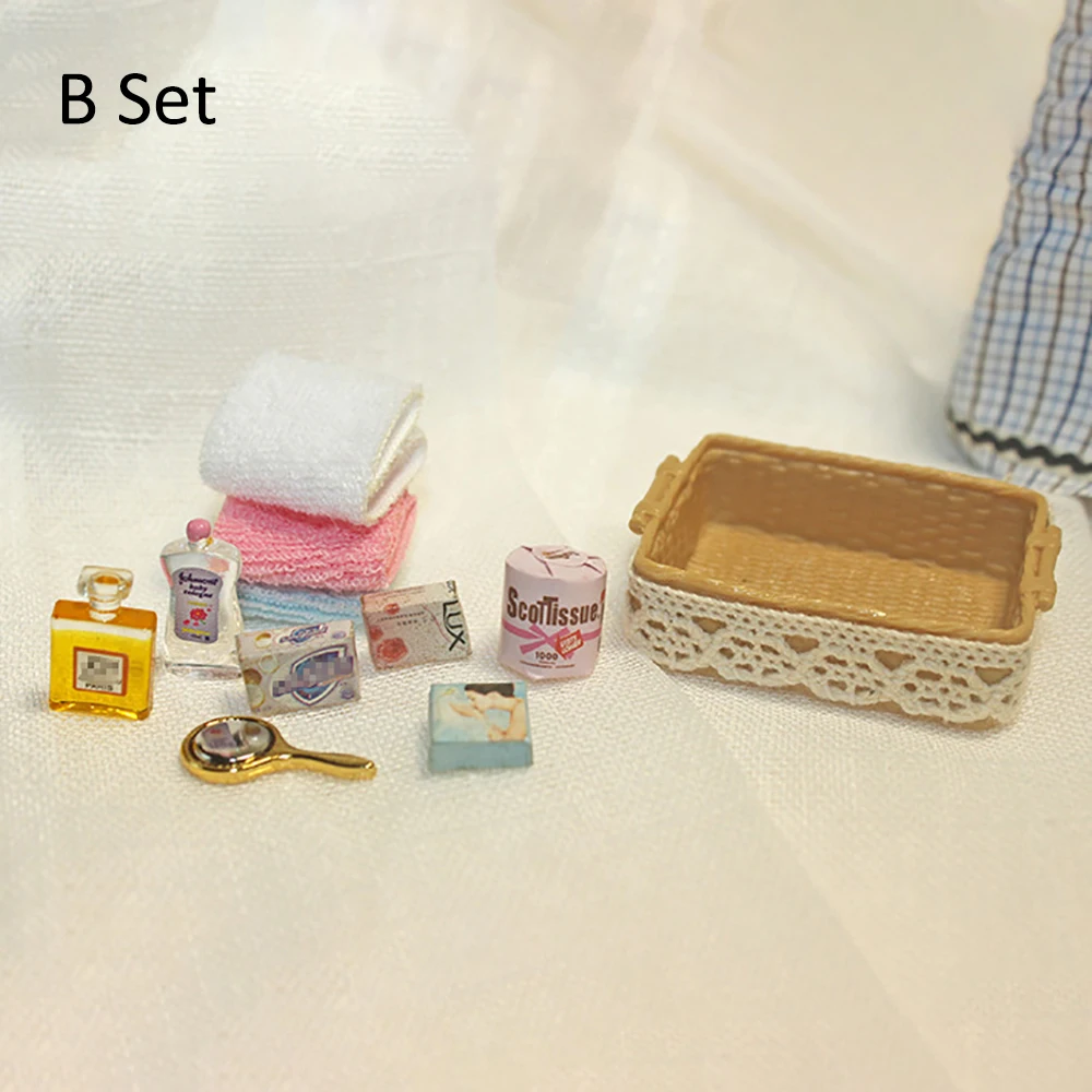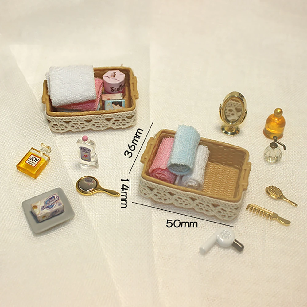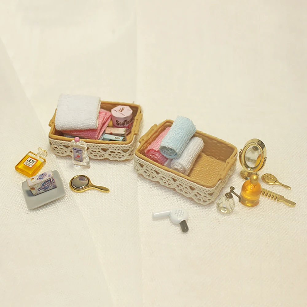 112 Dollhouse Miniature Accessories Mini Toiletries Set Simulation Mirror Towel Perfume Soap Model Toys Doll House Decoration