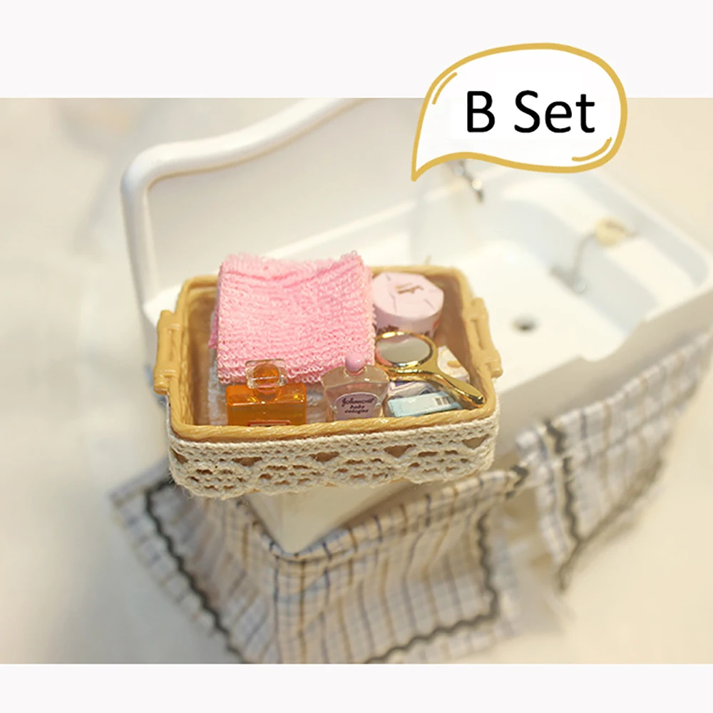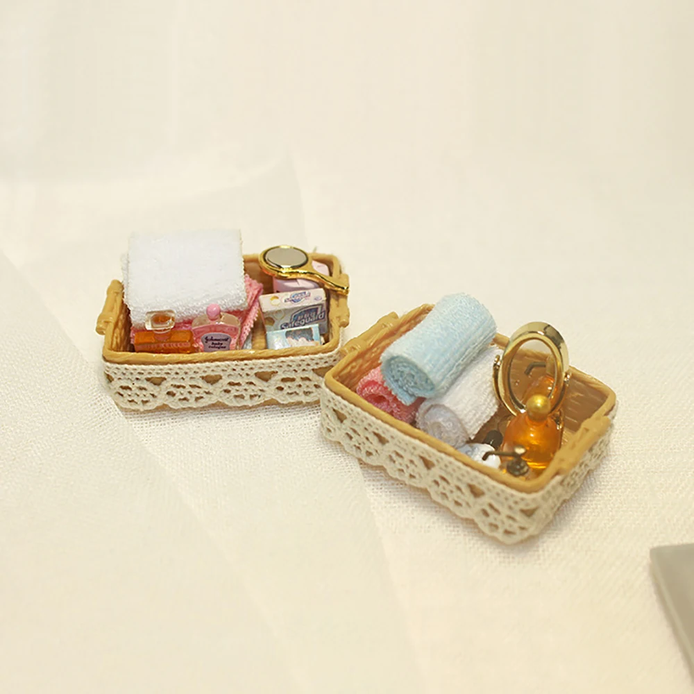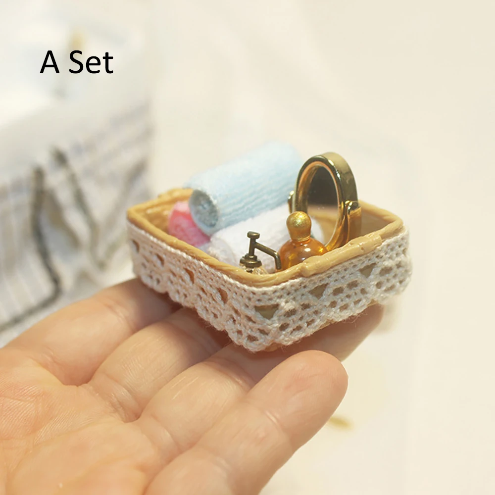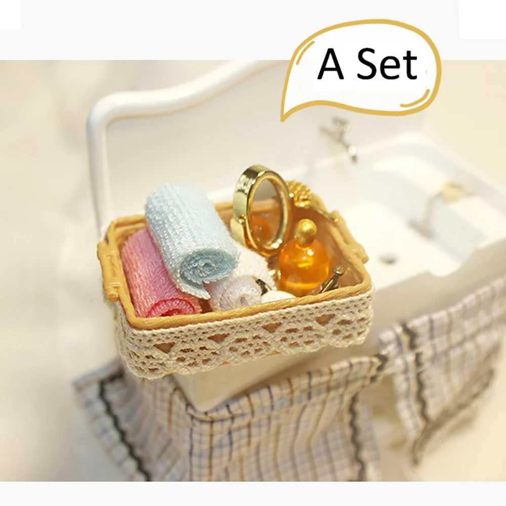 112 Dollhouse Miniature Accessories Mini Toiletries Set Simulation Mirror Towel Perfume Soap Model Toys Doll House Decoration
