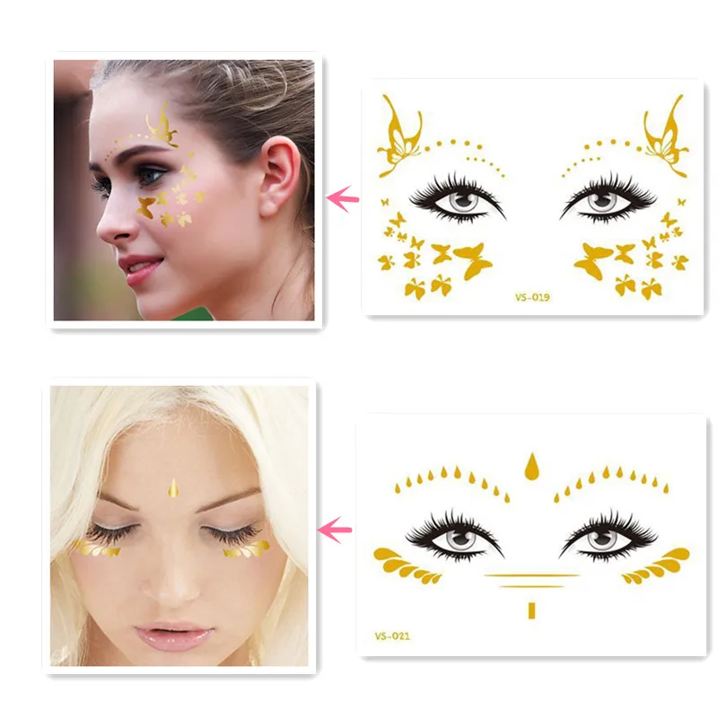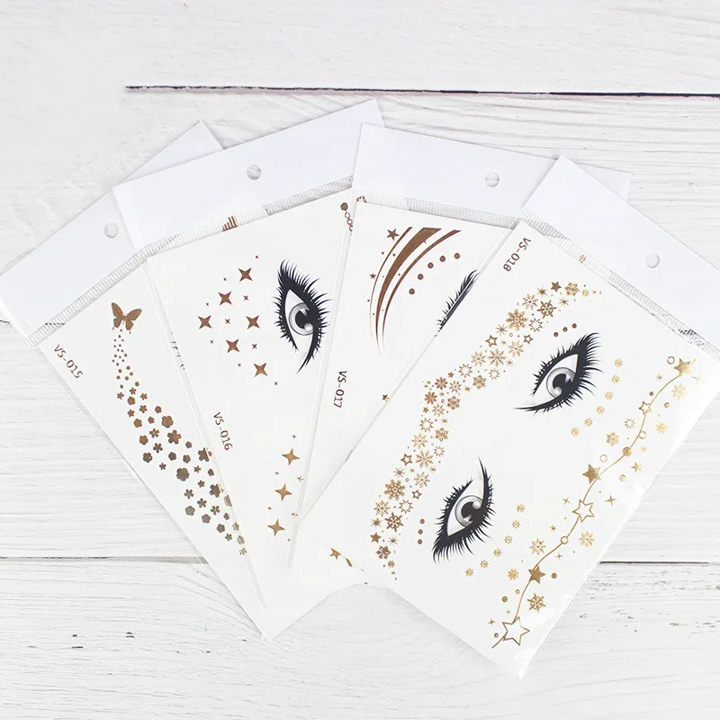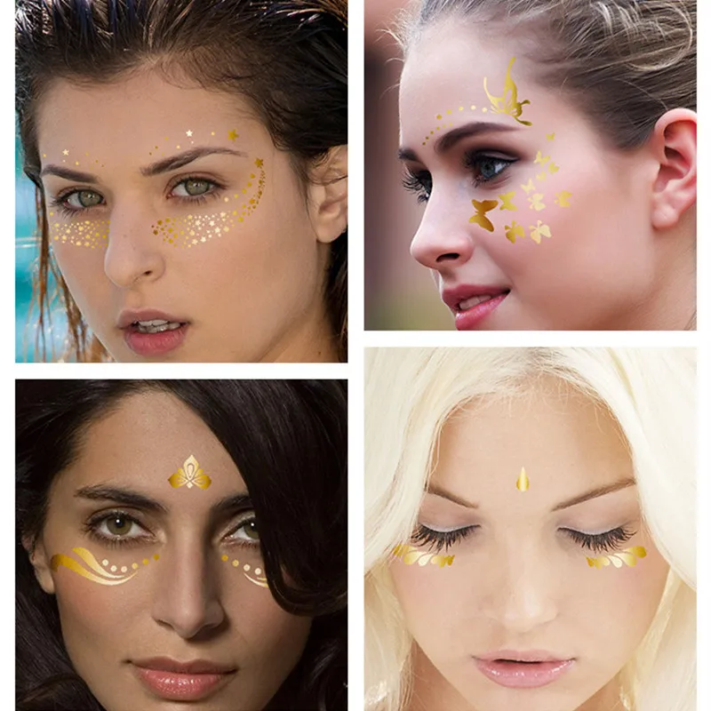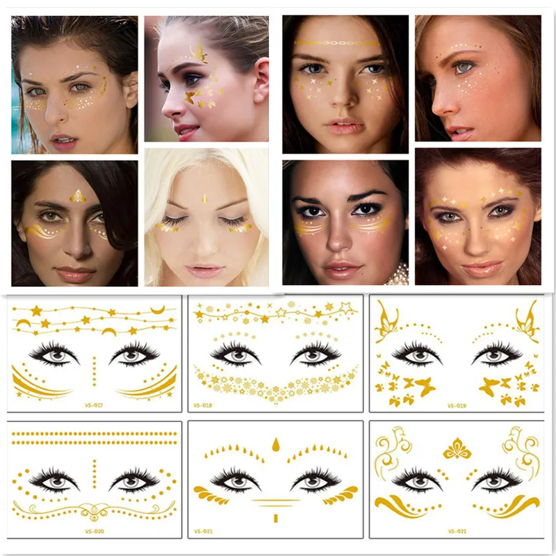 Новая Золотая временная татуировка для лица, водонепроницаемые накл...