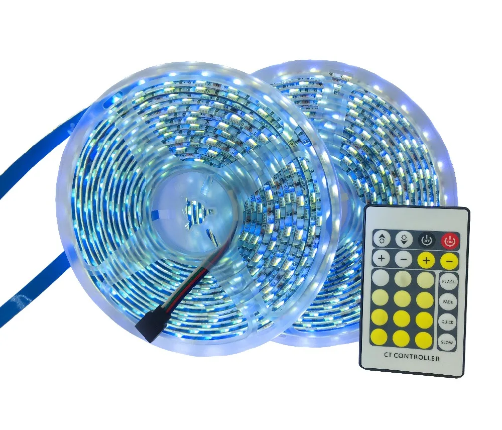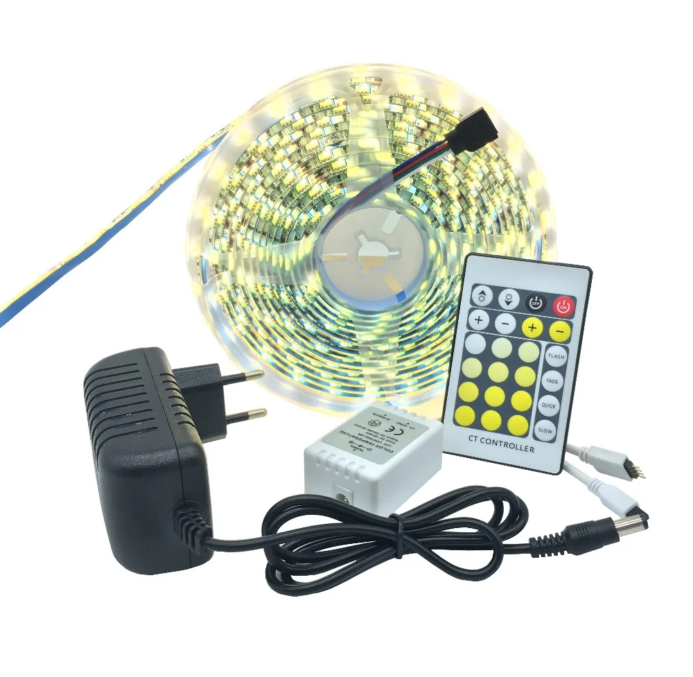 12 В постоянного тока 5050 Светодиодная лента CCT двойной белый 5 м холодный белый + теплый белый светодиодный гибкий светильник лента + 24 клавиши CCT пульт дистанционного управления + адаптер питания