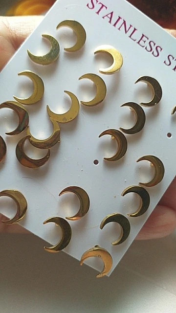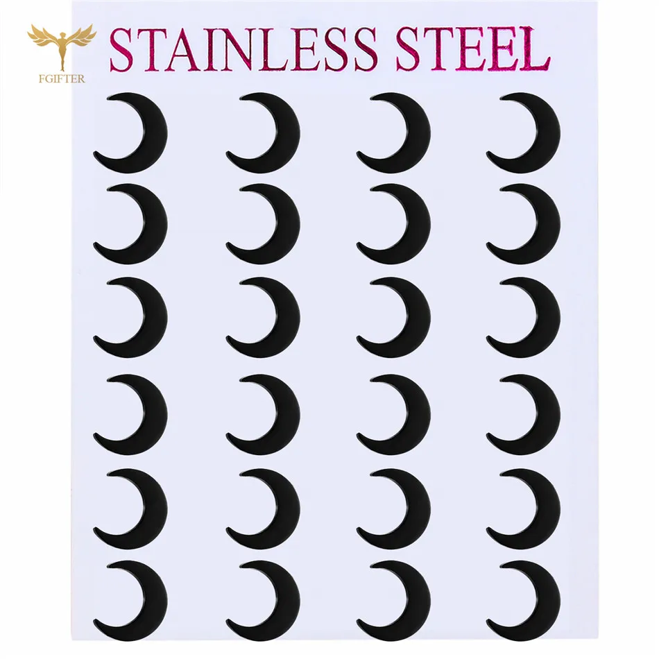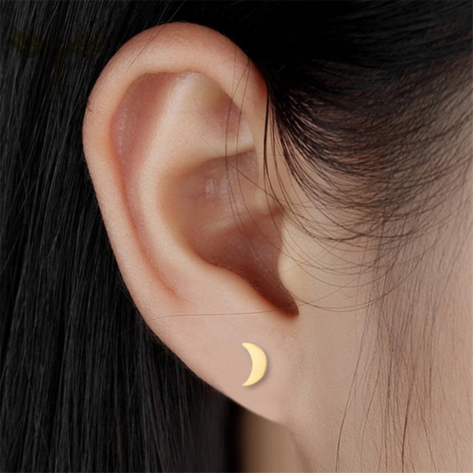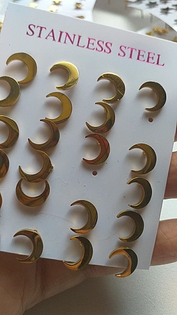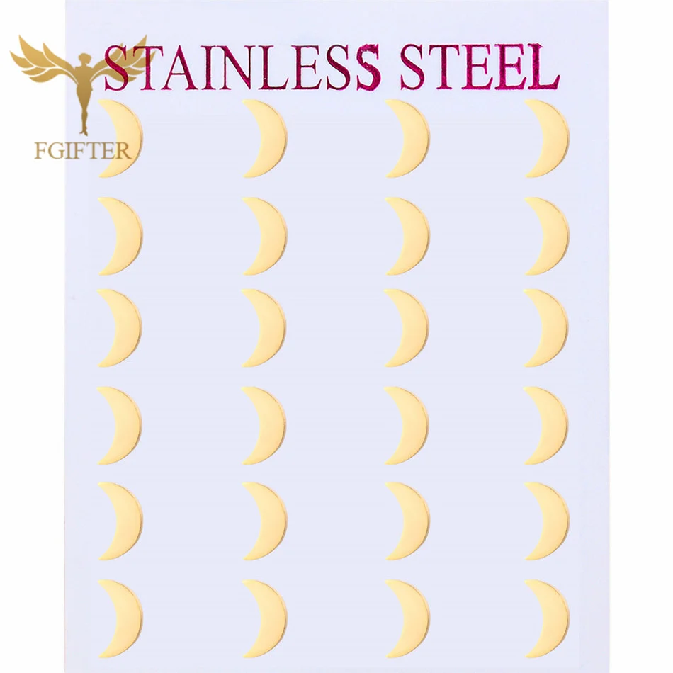 Оптовая продажа, золотые серьги в форме Луны, набор из 12 пар, Золотые серьги-гвоздики из нержавеющей стали для женщин и девушек, маленькие серьги-гвоздики в винтажном стиле
