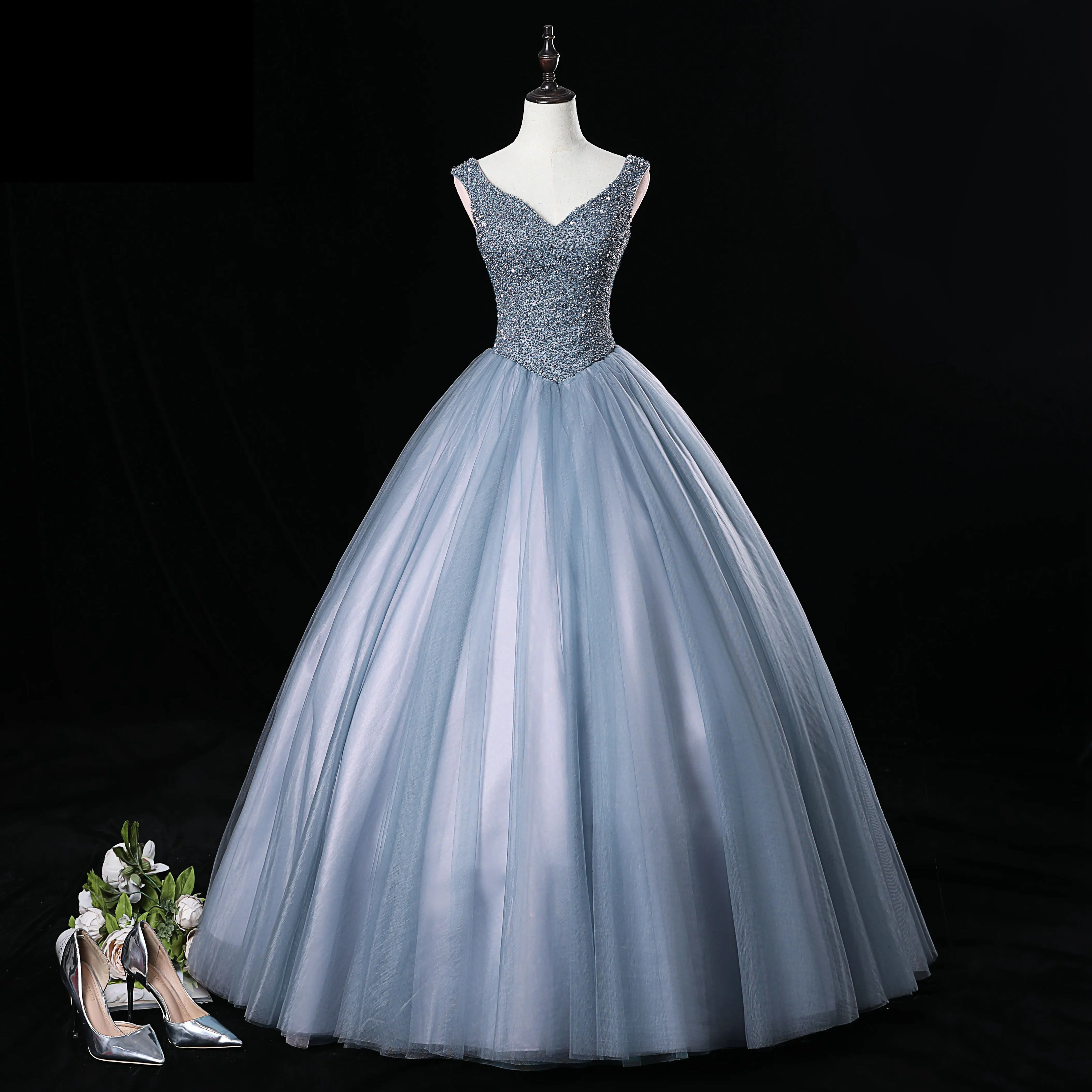 Винтажное бальное платье на бретельках, бальное платье принцессы, 2021, вечернее платье, милое, с бисером, блестками, 16