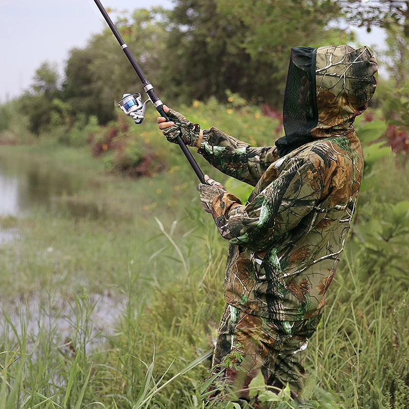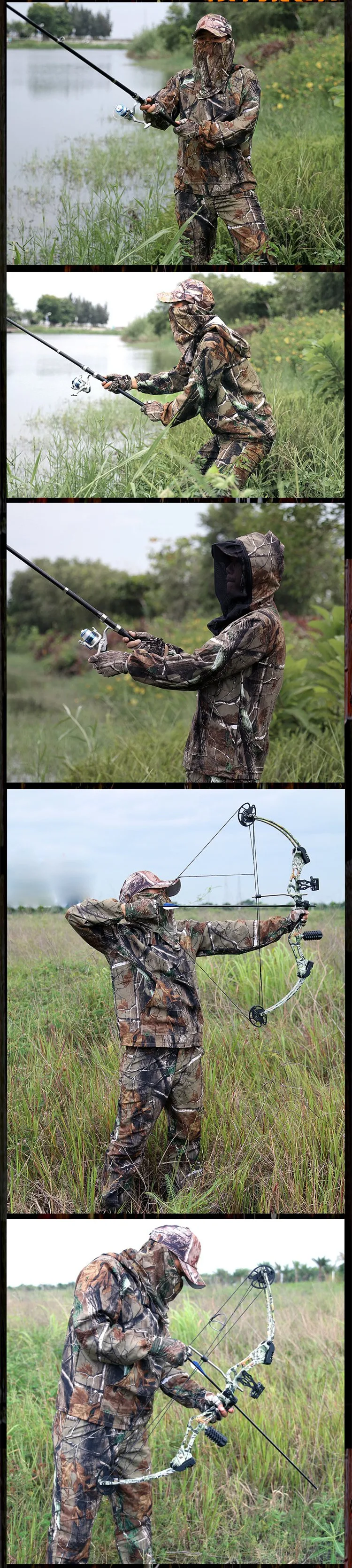 Летняя ультратонкая бионическая камуфляжная одежда для рыбалки и охоты с защитой от комаров, тактические костюмы Ghillie, комплект из футболки и штанов