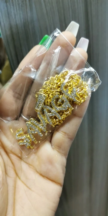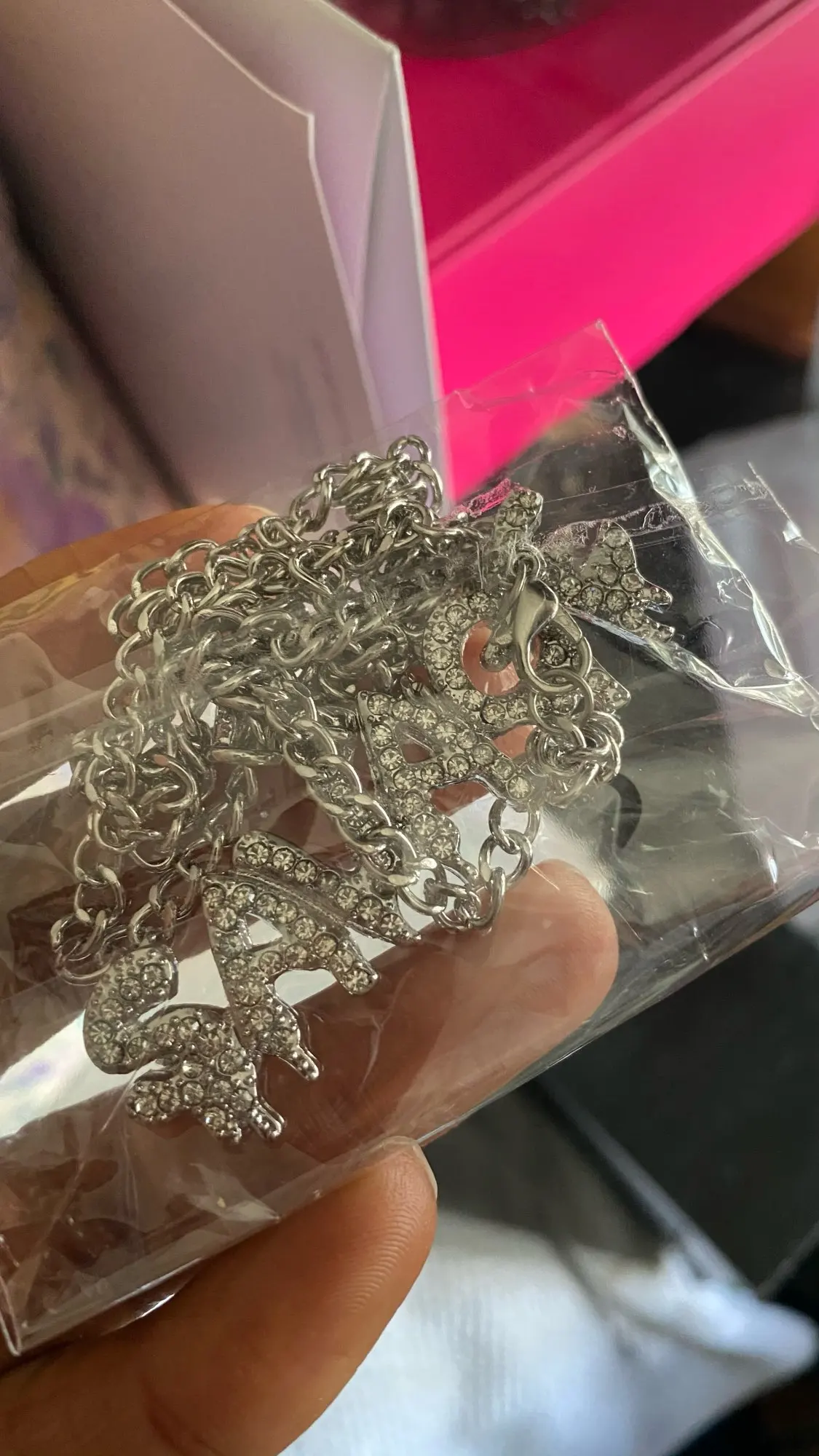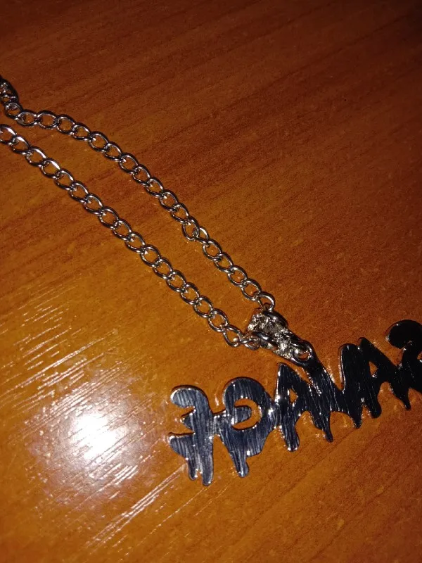 Это мило. Буквы не очень большие, а цепочка немного короткая. Как женское ожерелье. В целом хорошо за цену. Не было так долго, что не уверены, как он удерживает с течением времени.