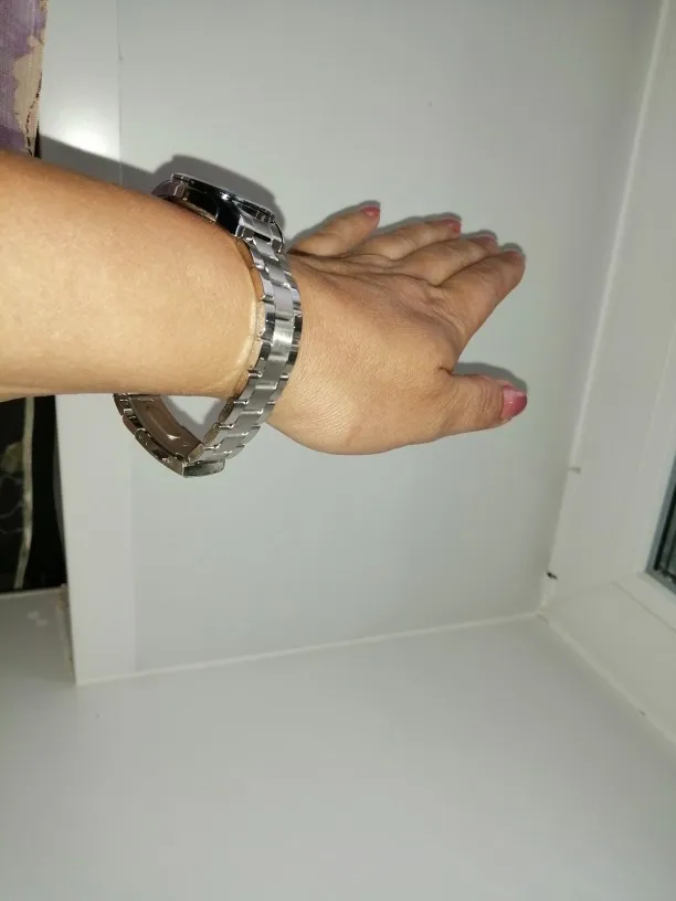 Заказала 05.08., получила 25.08., отслеживалось. Упаковка надёжная, в пакете, часы звернуты в изолон. Браслет обёрнут плёнкой, есть стопор под заводной головкой. Всё целое. Розовый цвет циферблата приятный - не бледный и не ядовитый. Стрелки и деления чёткие, не сливаются. Диаметр циферблата не большой и не маленький,женственный. Чтобы растегнуть браслет, нужно нажать на,, ушки,, на замке, застегивается до щелчка, пружинка замка крепкая. Сами часы действительно тяжёленькие, кто привык к пластмассовым - лучше не брать. Браслет и корпус часов гладкие, не цепляются. моё запястье 17см.,на фото видно ,что браслет достаточно длинный, часы подойдут и на полную руку. Сочетание цветов матового и блестящего выглядит презентабельно. Часы понравились : женственные, выглядят красиво, лаконично. Надеюсь, что качество соответствует. Продавцу спасибо, успехов.