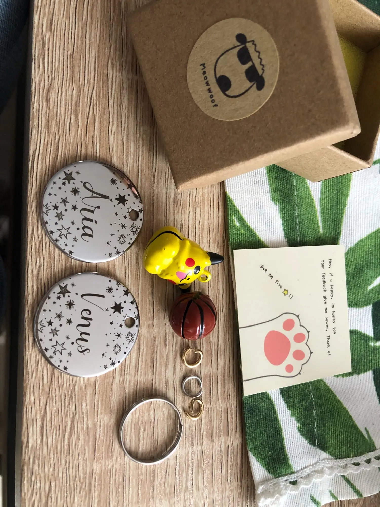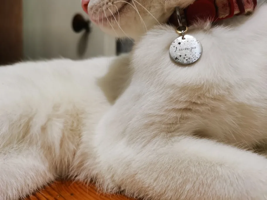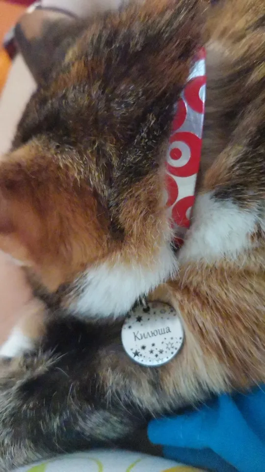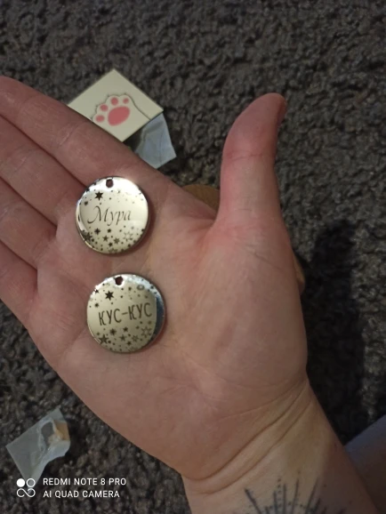 Не беспокойтесь, продукт прибыл быстро, остается только проверить продукт на кошке. Гравировка чистая и читаемая. Продавец отправил небольшой звонок и кольцо