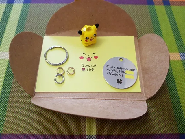 Адресник чудесный! быстрая доставка. В подарок положили подвеску "Пикачу" :3 Есть все нужные крепления/колечки. Большое спасибо ❤️