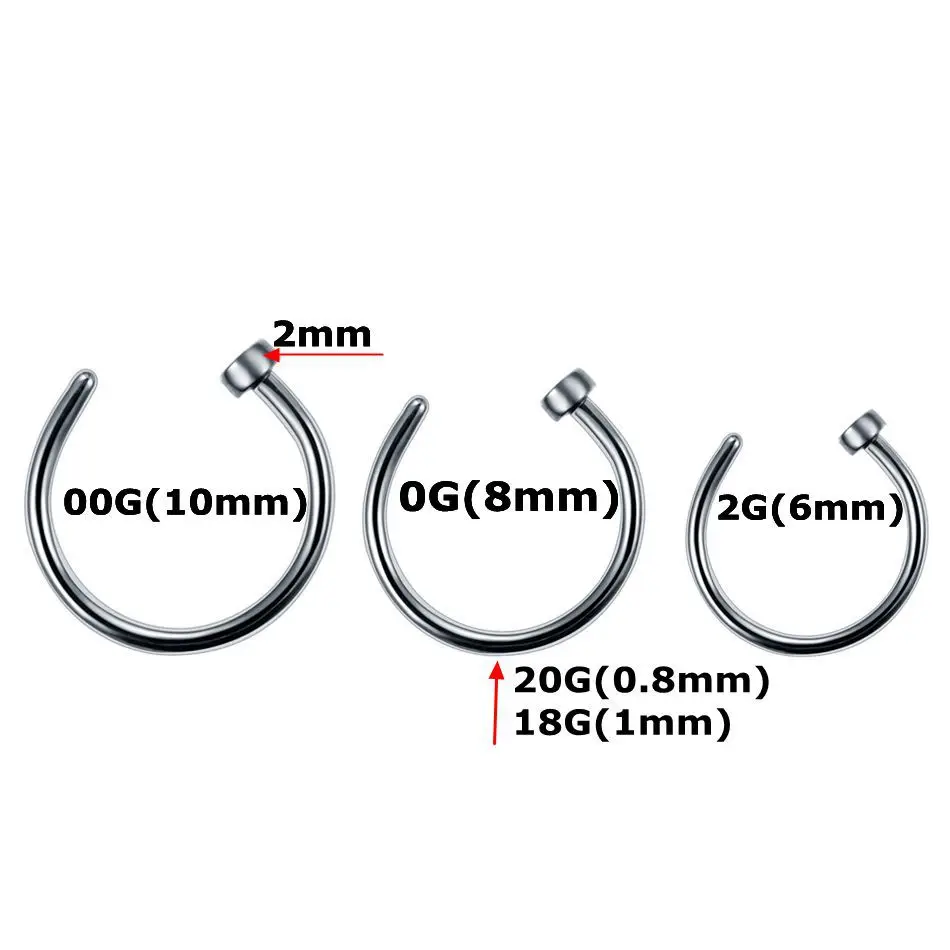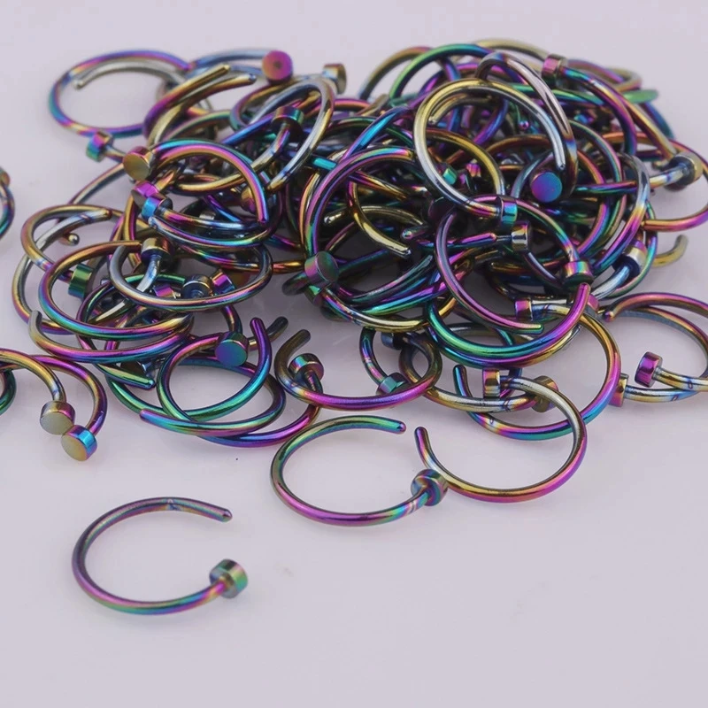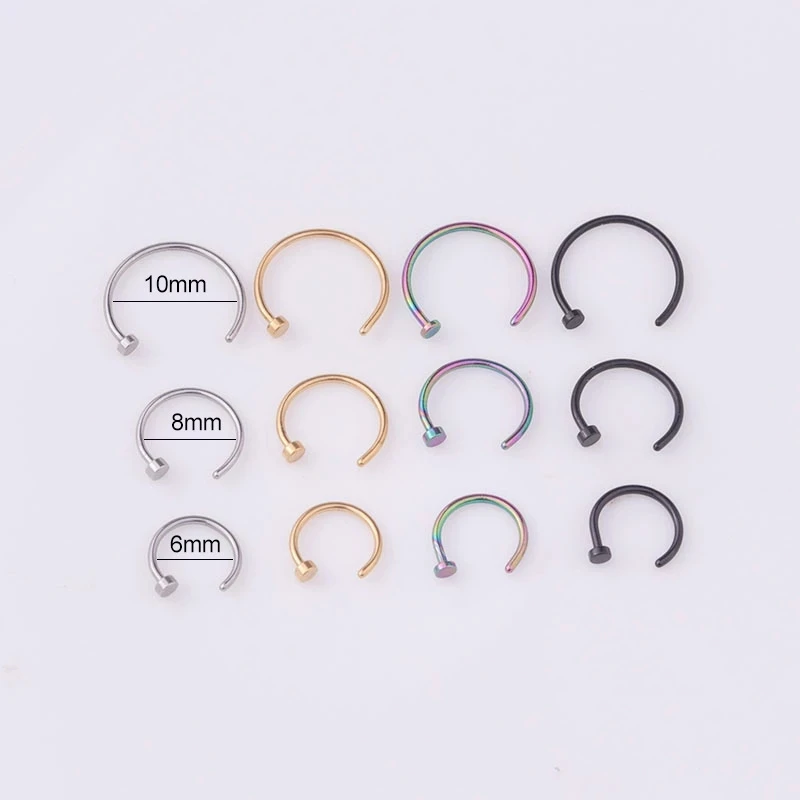 Идеальный товар, который подчеркнет Вашу индивидуальность и станет отличным подарком для ваших друзей.Анодированная Сталь, поверхность будет светиться очень долго.Простой дизайн, модный и элегантный.Подходит для вечерние, банкет, танец живота и фестиваль, также подходит для повседневной носки, так и для можно надеть на несколько позиций, как, например, на носы, соски, бровей, уши, и т. д. Тип изделия: кольцо для носаДиаметр кольца: прибл. 1 ммДиаметр кольца: 6 мм, 8 мм, 10 ммЦвет: сталь, черный, цветной, золотой, розовое золото,Материал: сталь 316LФорма: c-тип Посылка включает в себя:1 х кольцо для носа (только одна штука)