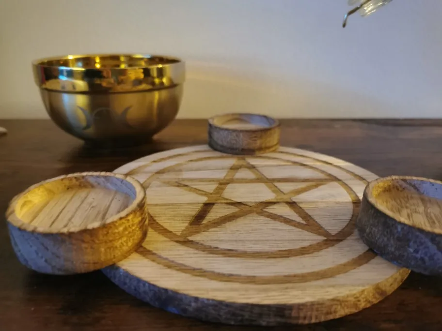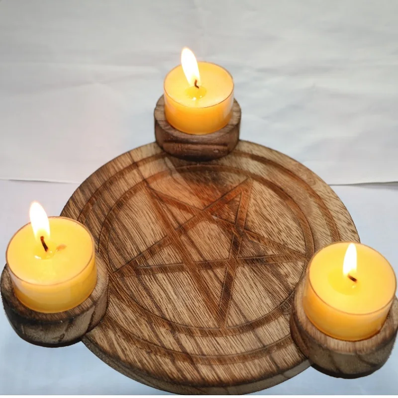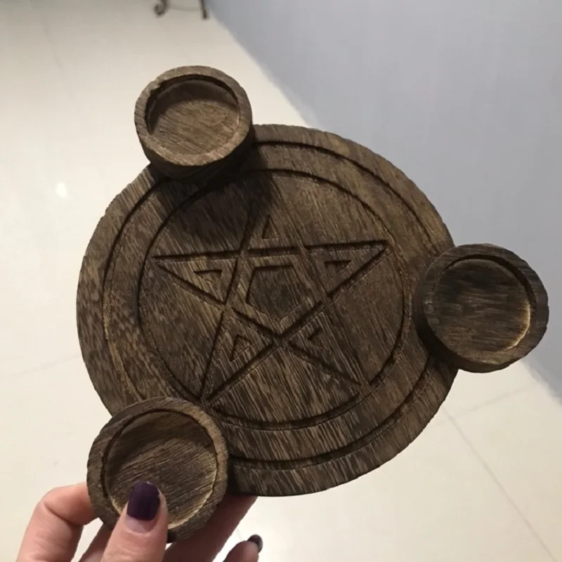 Астрология пентаграмма подсвечник из дерева настольная пентаграмма алтарная тарелка подсвечник деревянное гадание Викка аксессуары для церемонии