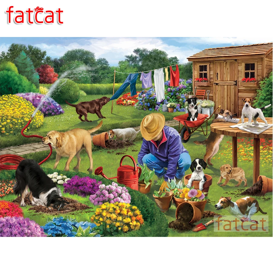 Алмазная живопись FATCAT с изображением сада собаки, квадратная круглая Алмазная вышивка 5D сделай сам, животное, рукоделие, декор AE1305