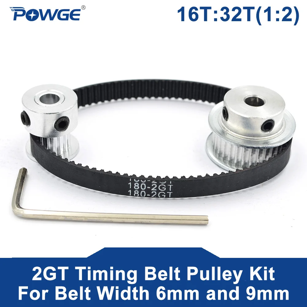POWGE GT2/2GT синхронный шкив ремня 16 зубьев и 32 Зубьев набор коэффициента скорости16T:32T (1:2)Для ширины ремня 6 мм и 9 мм(16 зубов 2GT шкив Диаметр 4/5/6 мм и 32 Зубьев 2GT шкив Диаметр 5/6/6.35/8 мм)180-2GT-6 Ширина 6 ммКомплект ременных ремней с Редуктором Скорости