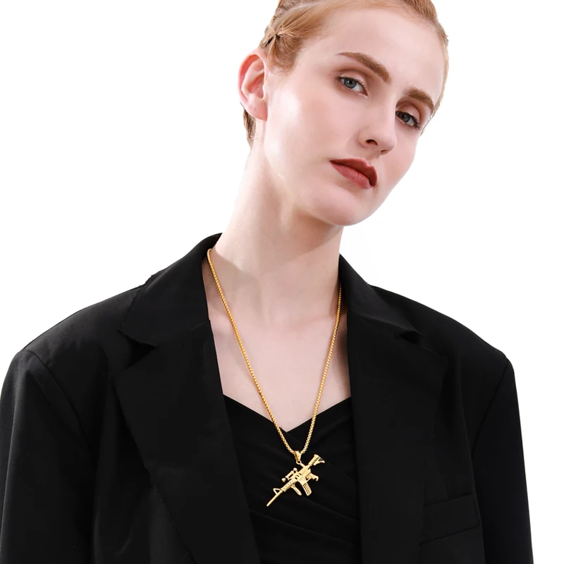 Модное ожерелье с подвеской в форме пистолета в стиле панк хип-хоп для мужчин ожерелье с цепочкой из нержавеющей стали в коробке аксессуары для бойфренда для клуба, бара, вечеринки