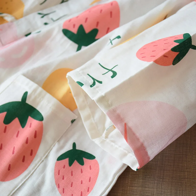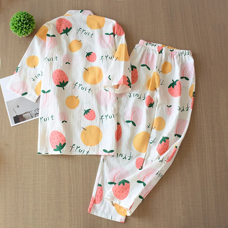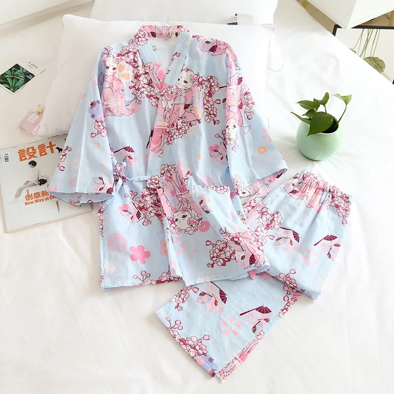 Новинка 2021 года, кимоно в японском стиле с семи рукавами, пижамный комплект для женщин, весна-осень, 100% хлопок, газовая Домашняя одежда милый комплект из двух предметов