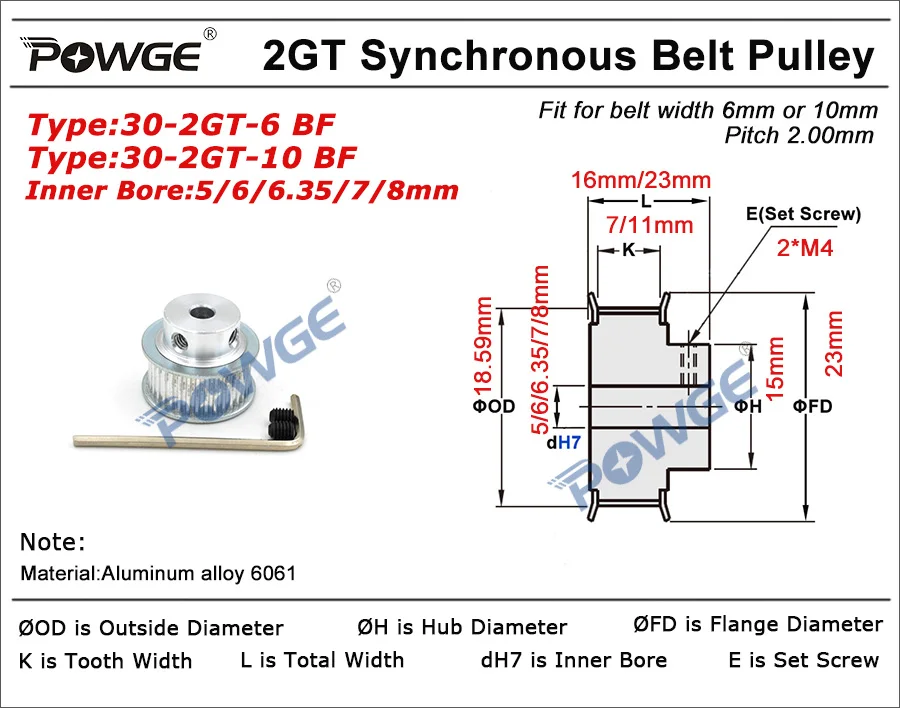 Синхронный зубчатый шкив POWGE 2GT2MGT, 30 зубьев, 120 зубьев, диам...