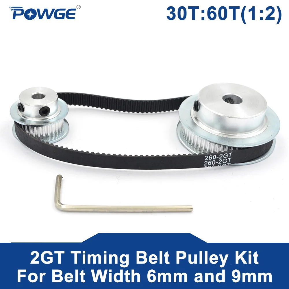 Синхронный зубчатый шкив POWGE 2M2GT, 30 зубьев, 60 зубьев, отверстие 5-8 мм, передаточное число 30T:60T 1:2 для набора ремня 260-2GT шириной 69 мм