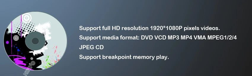 DVD видеоплеерAVI/DVD + R/DVD + RW/DVD-RW/VCD/MP3/CD/CD-RW/JPEG и т. Д.