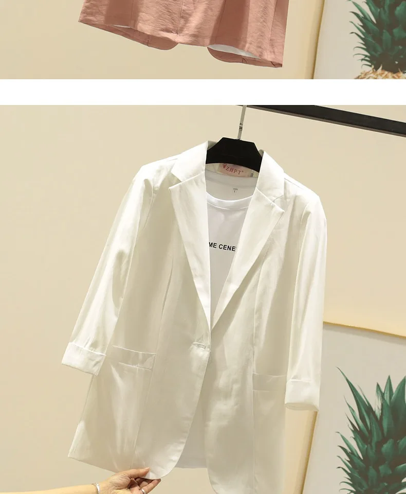 Женский приталенный пиджак, черный, розовый, белый, желтый тонкий льняной пиджак с рукавом три четверти, весна 2021