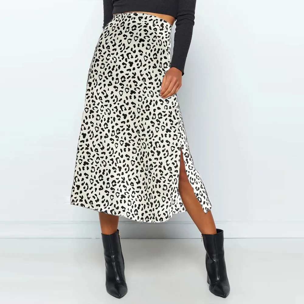 Юбка-миди Jocoo Jolee женская с леопардовым принтом, шифоновые женские юбки с завышенной талией, на молнии, с разрезом, облегающая трапециевидная, 2020