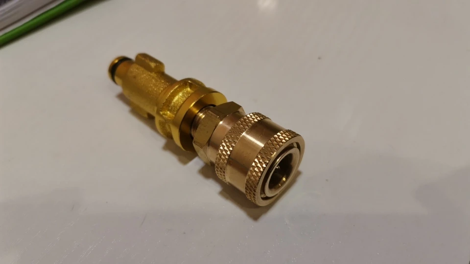 Все как в описании. Немного не чётко садится в быстросъем, но возможно притрется. Брал для пенника на мойку дэу. Материал вполне качественный. С фумлентой накрутилось нормально. Нигде ничего не подтекае.
