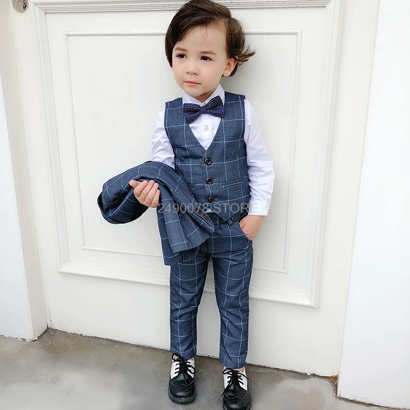 Детский Блейзер, жилет и брюки комплект из 3 предметов, Свадебный к...