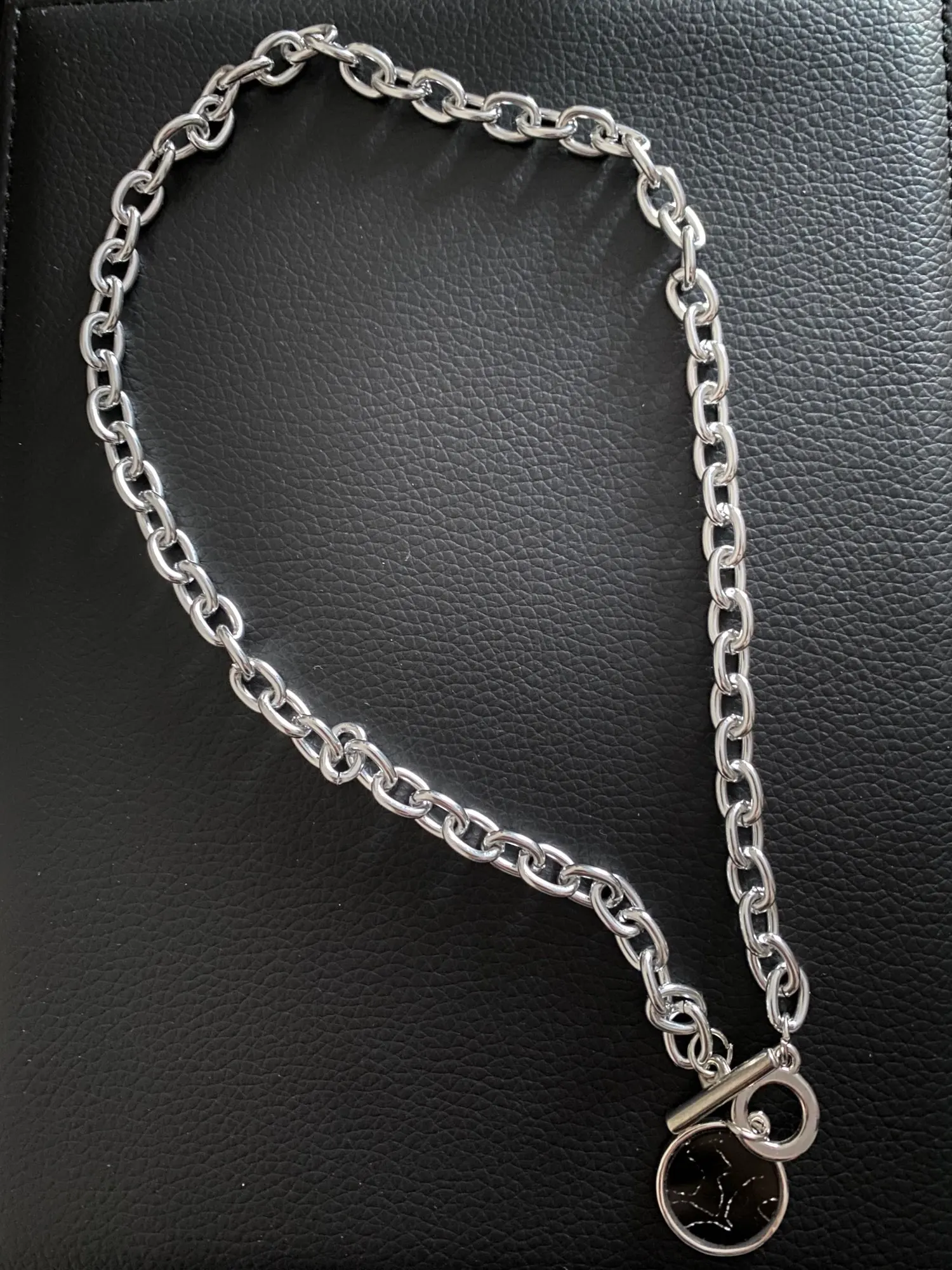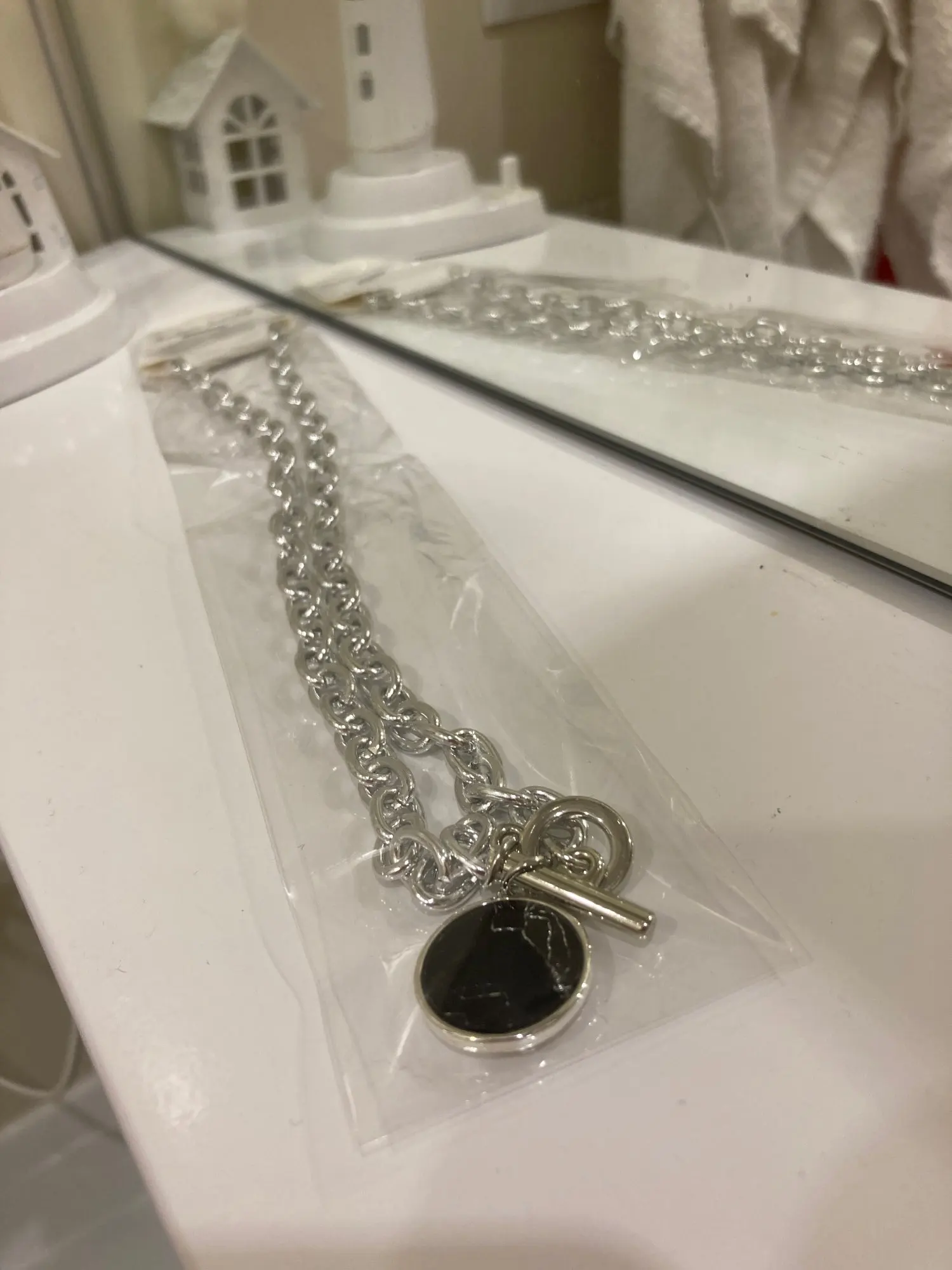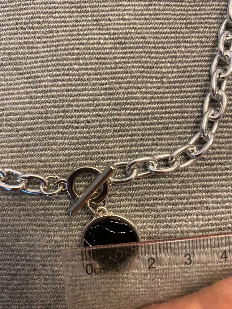 Стильная цепь из лёгкого метала, хорошего качества. Дилина в застегнутом виде 27см. Продавца рекомендую.