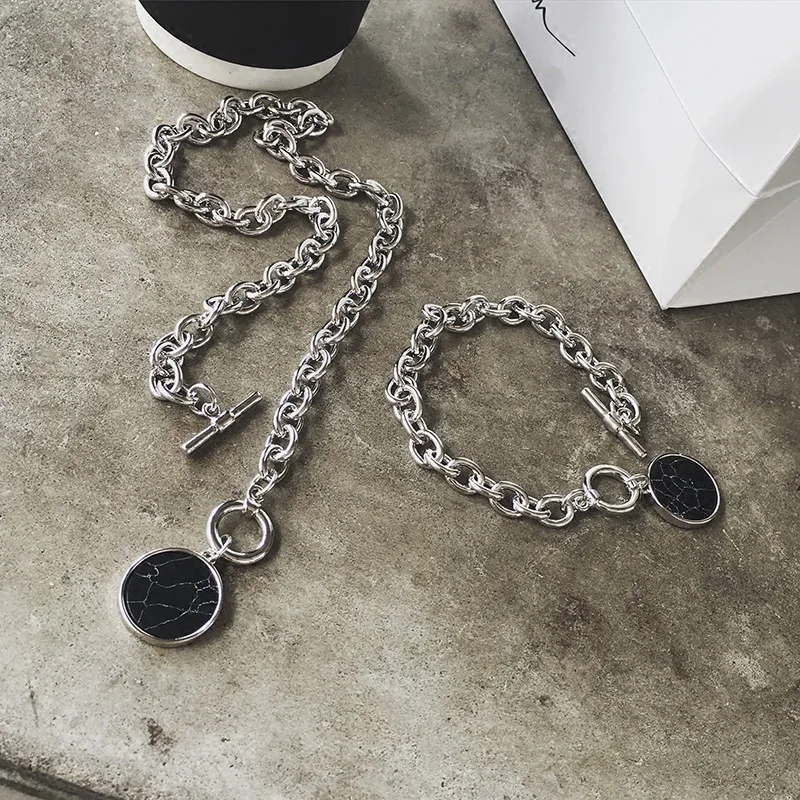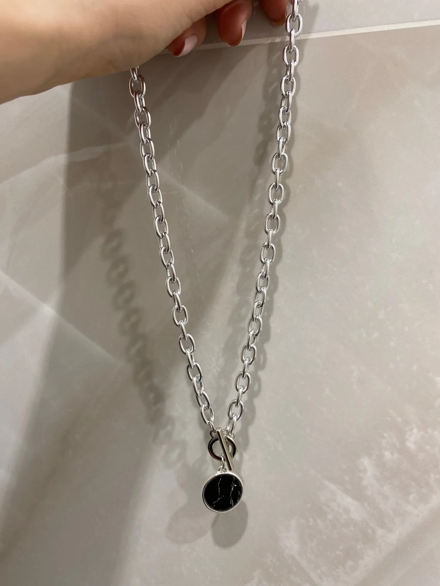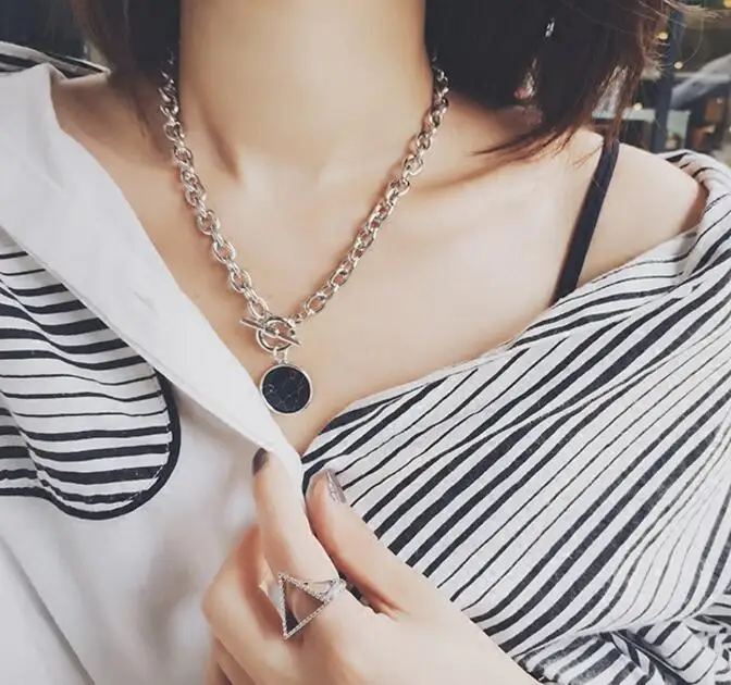 Ожерелье-цепочка KMVEXO, минималистская, повседневная, для женщин, с круглым мраморным кулоном, хип-хоп, женская бижутерия, ожерелье