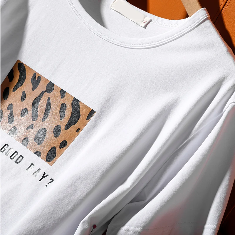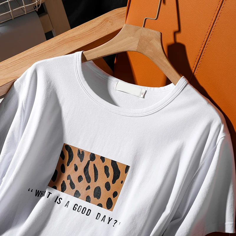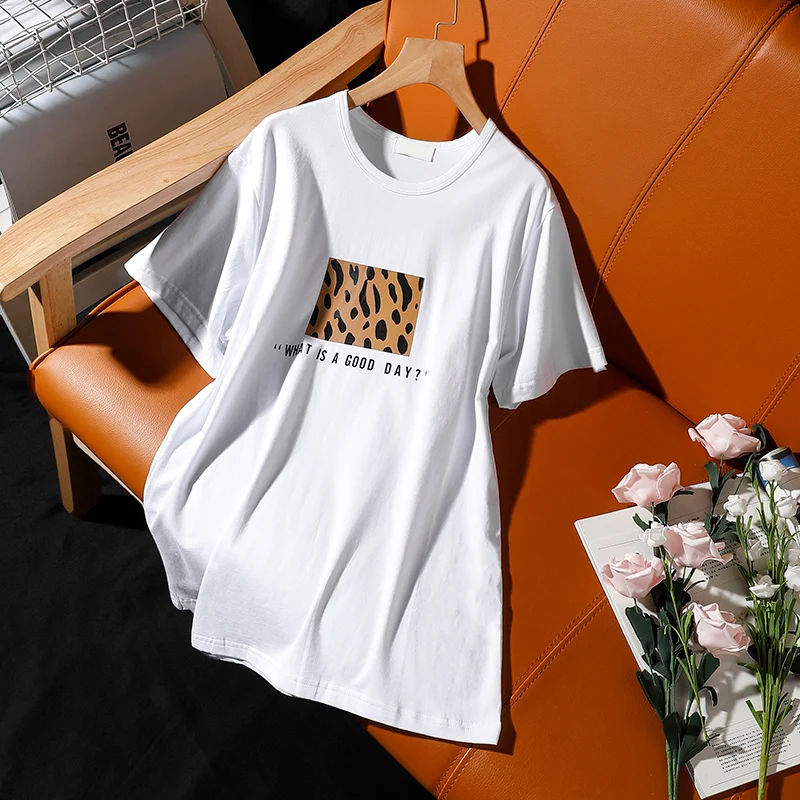 Лето 2021 года, новая футболка с леопардовым принтом, женская футболка с короткими рукавами из высококачественного хлопка, удобные топы, свободные модные пуловеры для отдыха