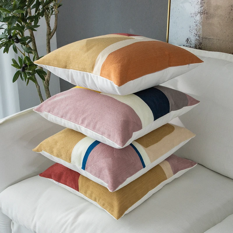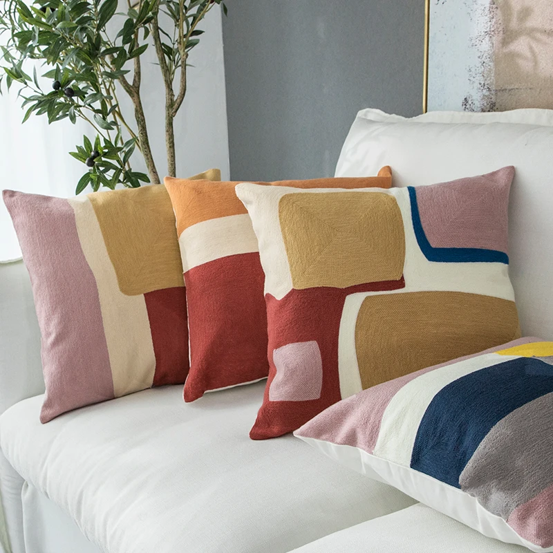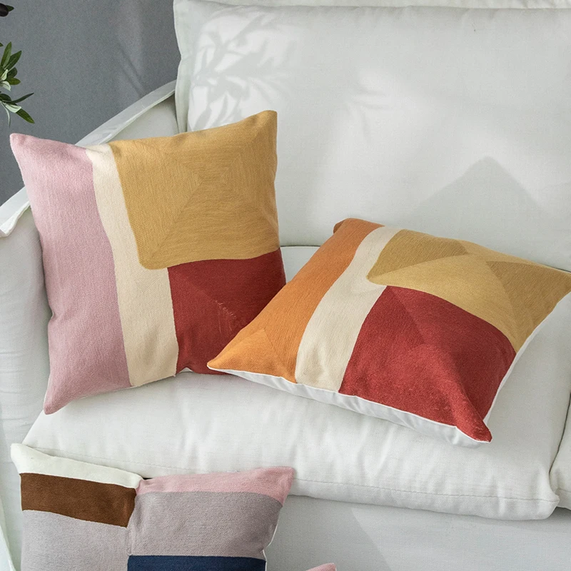 Наволочка для подушки, 45x45 см, с геометрической вышивкой