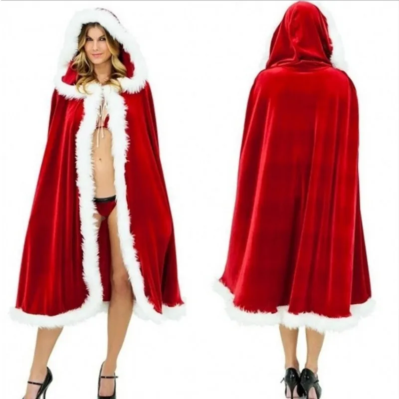 Рождественская накидка для женщин и девочек, красная бархатная накидка для косплея, пончо для взрослых и детей, накидка, 1 шт., 60-150 см