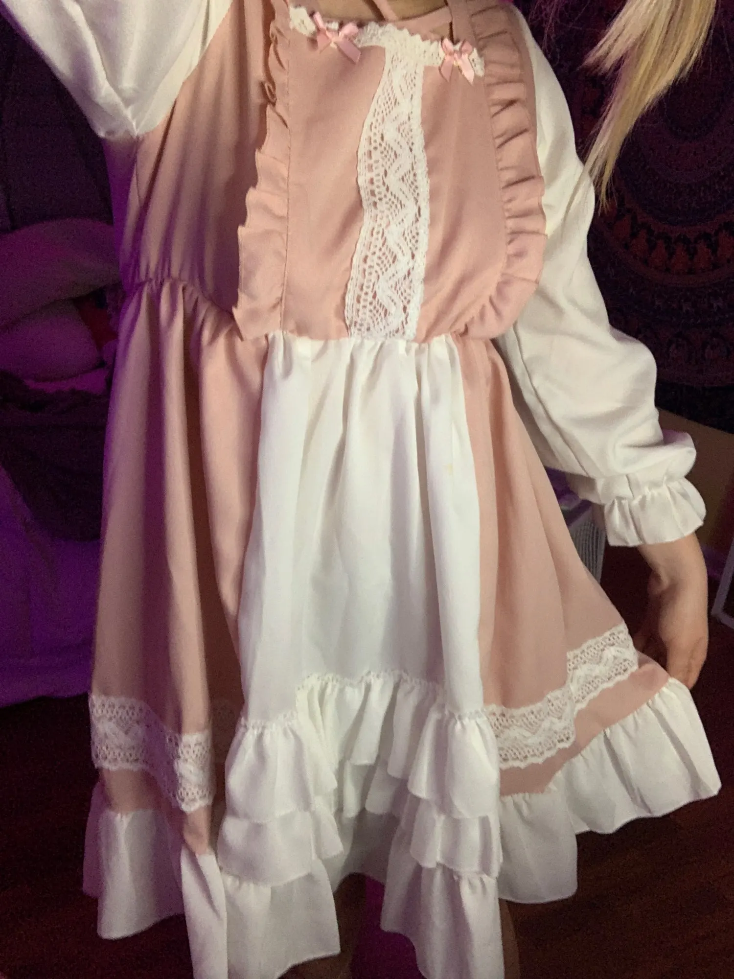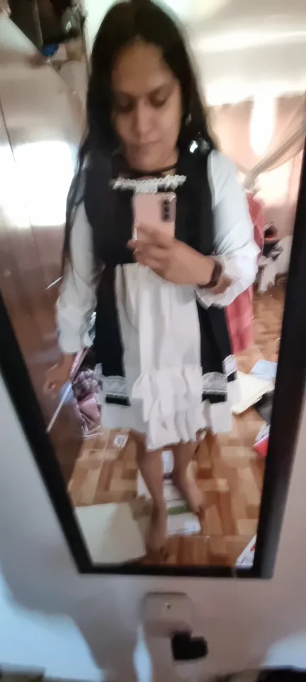 Очень мило, выглядит так же, как на картинке. Я рекомендую выбирать размер больше, если вы в состоянии, белые части немного просвечиваются (как вы можете видеть на картинке, когда я их ношу) но кроме того, это действительно очень мило. Это не так пышно, как на картинке, поэтому я ношу под ним нижнюю юбку.