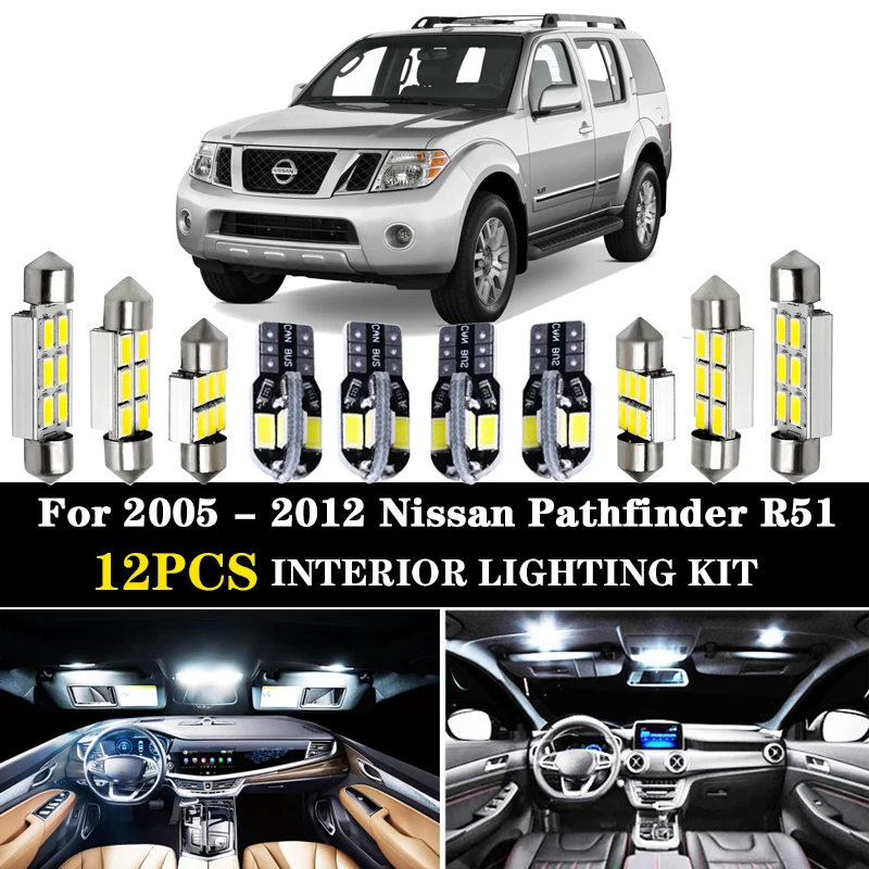 12 шт. белые светодиодные с Canbus автомобильный интерьерный светильник s комплект для 2005 - 2012 Nissan Pathfinder R51 led интерьер КУПОЛ номерной знак багажник светильник