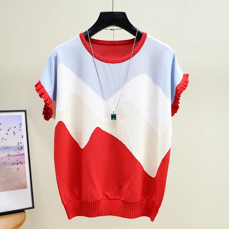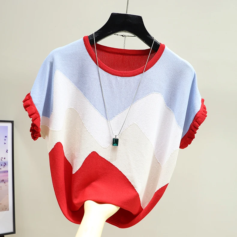 Тонкая футболка shintimes, женская трикотажная цветная футболка с прострочкой, женские летние свободные топы, женские повседневные футболки с коротким рукавом для женщин